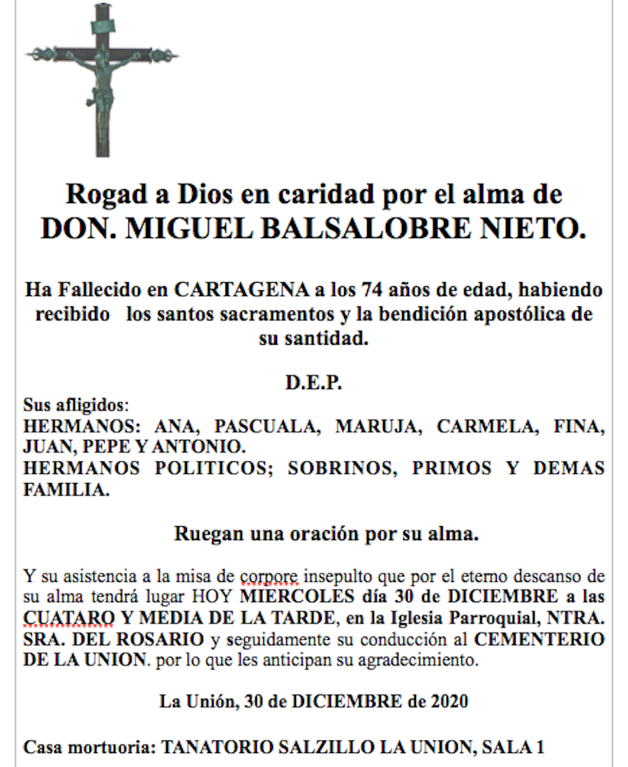 Obituario: Miguel Balsalobre Nieto