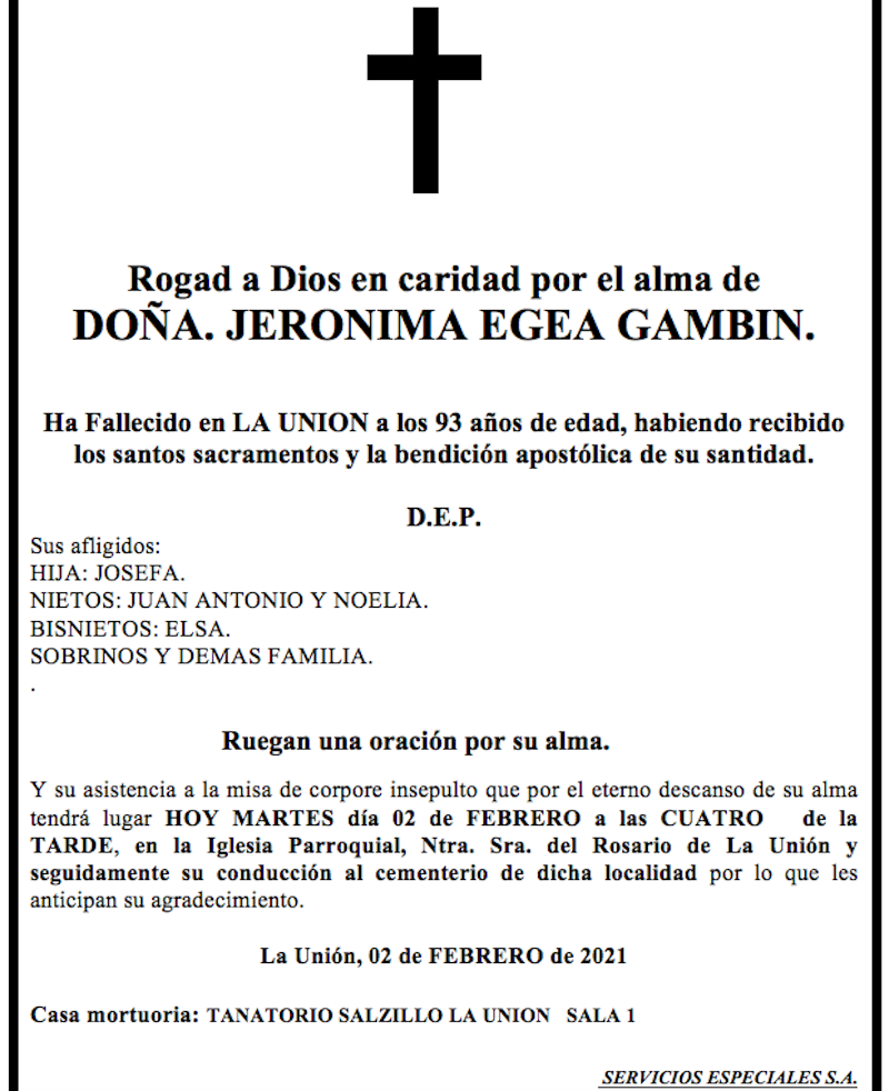 Obituario: Jerónima Egea Gambín