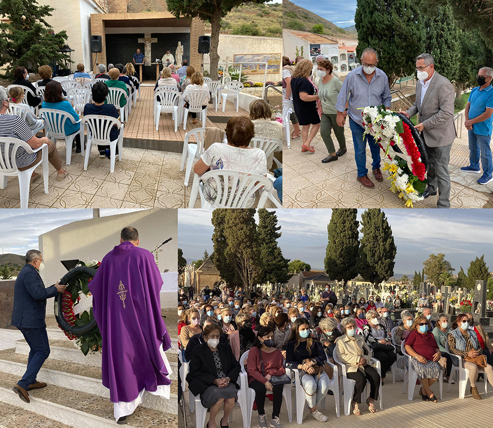 Los cementerios de ambas poblaciones han celebrado, con ofrenda floral incluidas, las eucaristías del ‘Día de todos los santos’, en el caso de la pedanía (oficiada por Andrés Vera), y del ‘Día de los difuntos’, en el camposanto de la ciudad (oficiada por Ginés Luis Vicente).