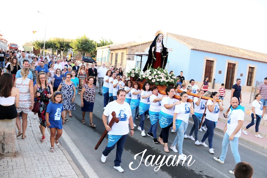 La imagen de la Virgen de los Dolores, sobre hombros femeninos, salió ayer de su ermita para recorrer en procesión su pueblo. A su conclusión se celebró una eucaristía oficiada por Luis Miguel García.