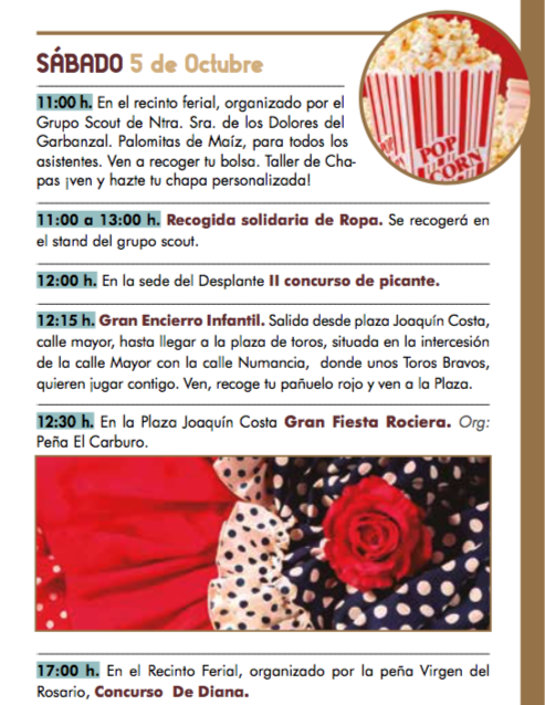 Intenso largo fin de semana, pues cabe recordar que el lunes es festivo. Para empezar, el programa de actos de la Virgen del Rosario viene cargado de actividades de las peñas para la jornada de hoy, además de la cabalgata de disfraces y la música flamenca.