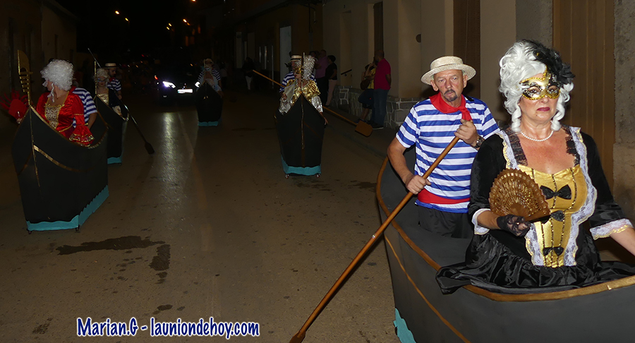 Los integrantes de El Piñón comenta a este diario que ha sido el tercer primer premio logrado en su trayectoria y el cuarto puesto de honor en las últimas cinco ediciones de las fiestas. Preguntados por el motivo por el que eligieron a las damas y los gondoleros, apuntan que fue por votación democrática de las propuestas presentadas y que en el disfraz ofrecido este año en el desfile empezaron “a ratos libres” a trabajar en abril. Hubo algún caso, valga como anécdota, que después de terminarlo, costó sacar la góndola del piso donde residía unos penistas y bajarla por las escaleras al llevar una estructura metálica.
