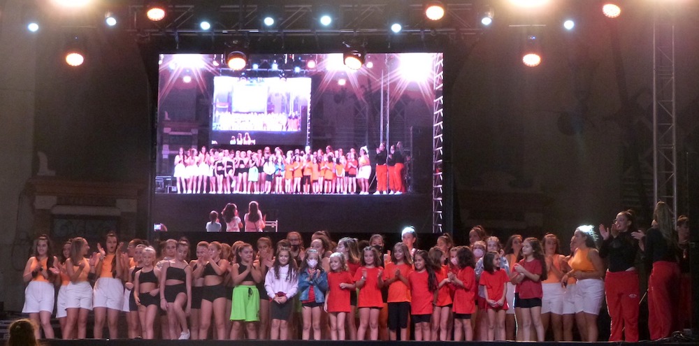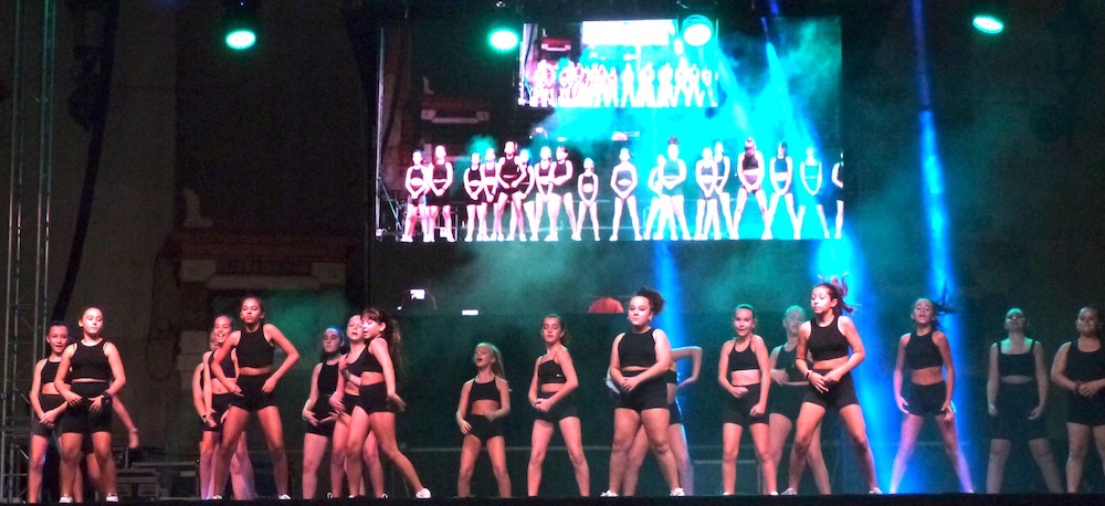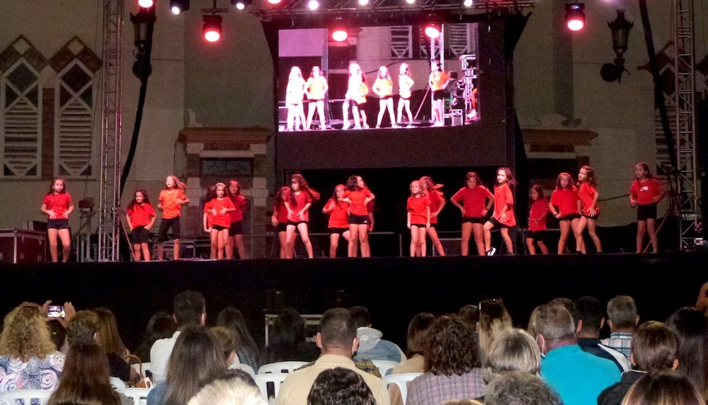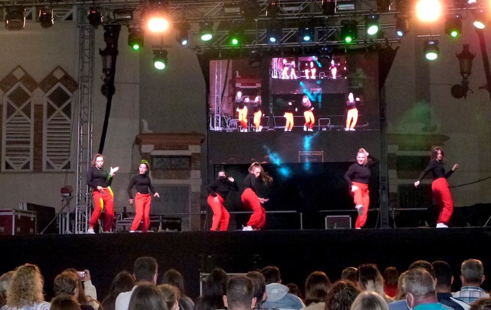 Las alumnas de la academia de baile de MarDance ofrecieron una exhibición de bailes coreográficos en el escenario de la plaza de Joaquín Costa dentro de los actos patronales de octubre en La Unión.