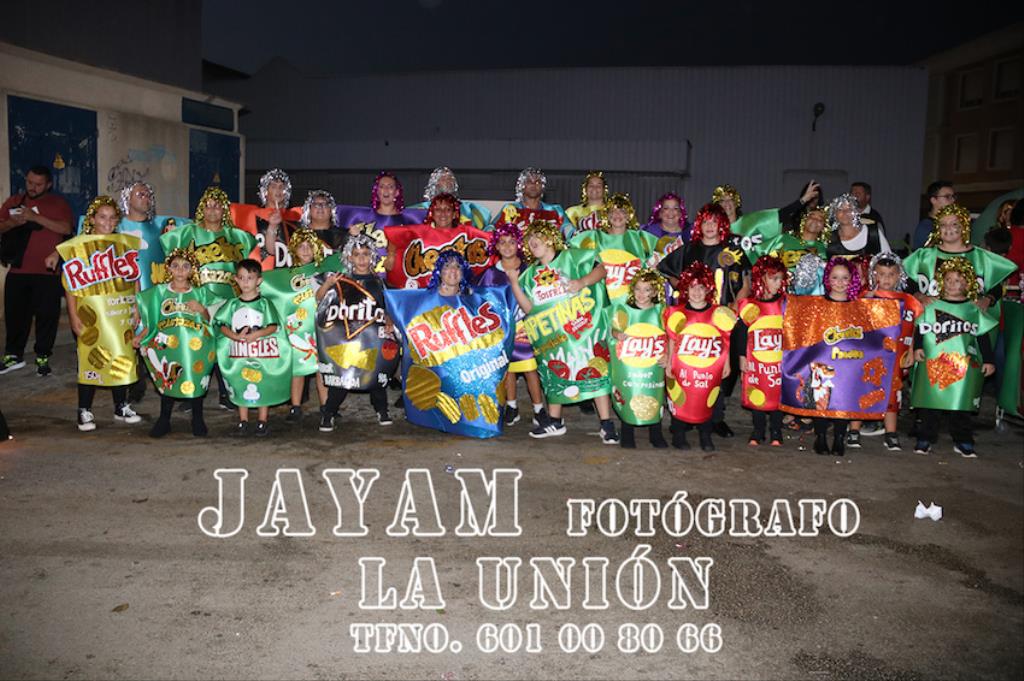 El jurado eligió a la peña como vencedora de una edición en la que las patatas fritas de 'Comparsa Amalia' fue segunda y en la que el ajedrez de ‘Divertilandia’ de Cartagena ganó el concurso de comparsas de la comarca, mientras que un disfraz de paella triunfó en la modalidad individual. GALERÍA DE FOTOS (pinchar aquí)