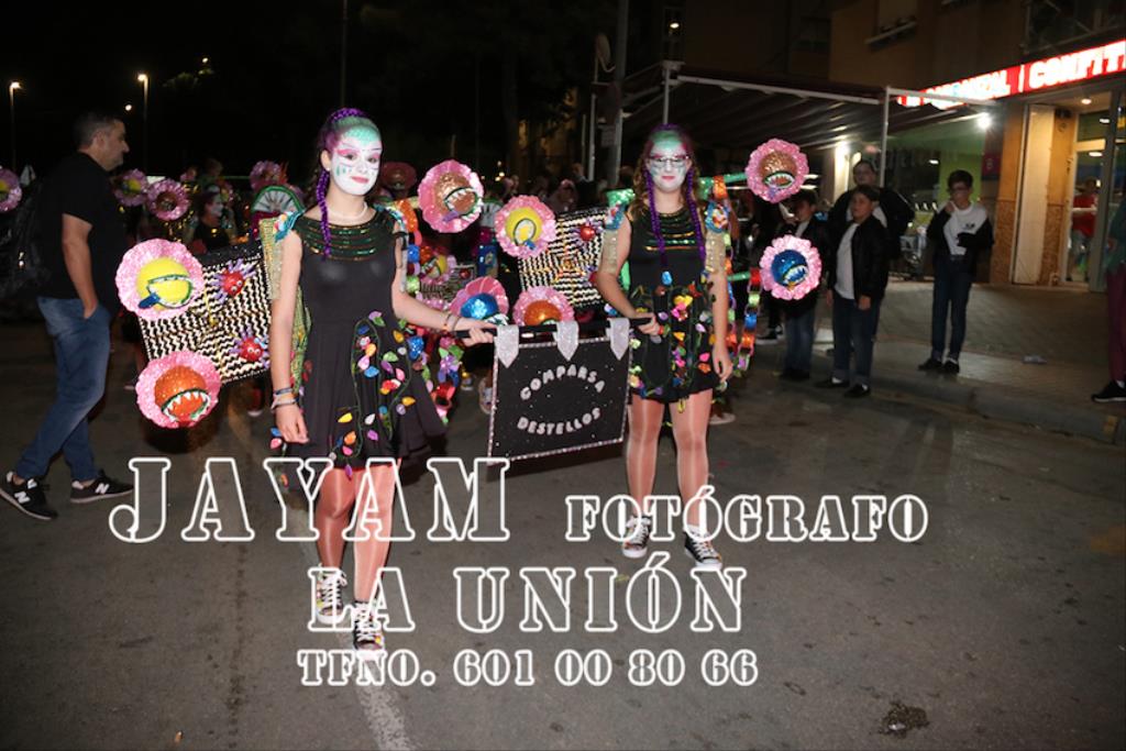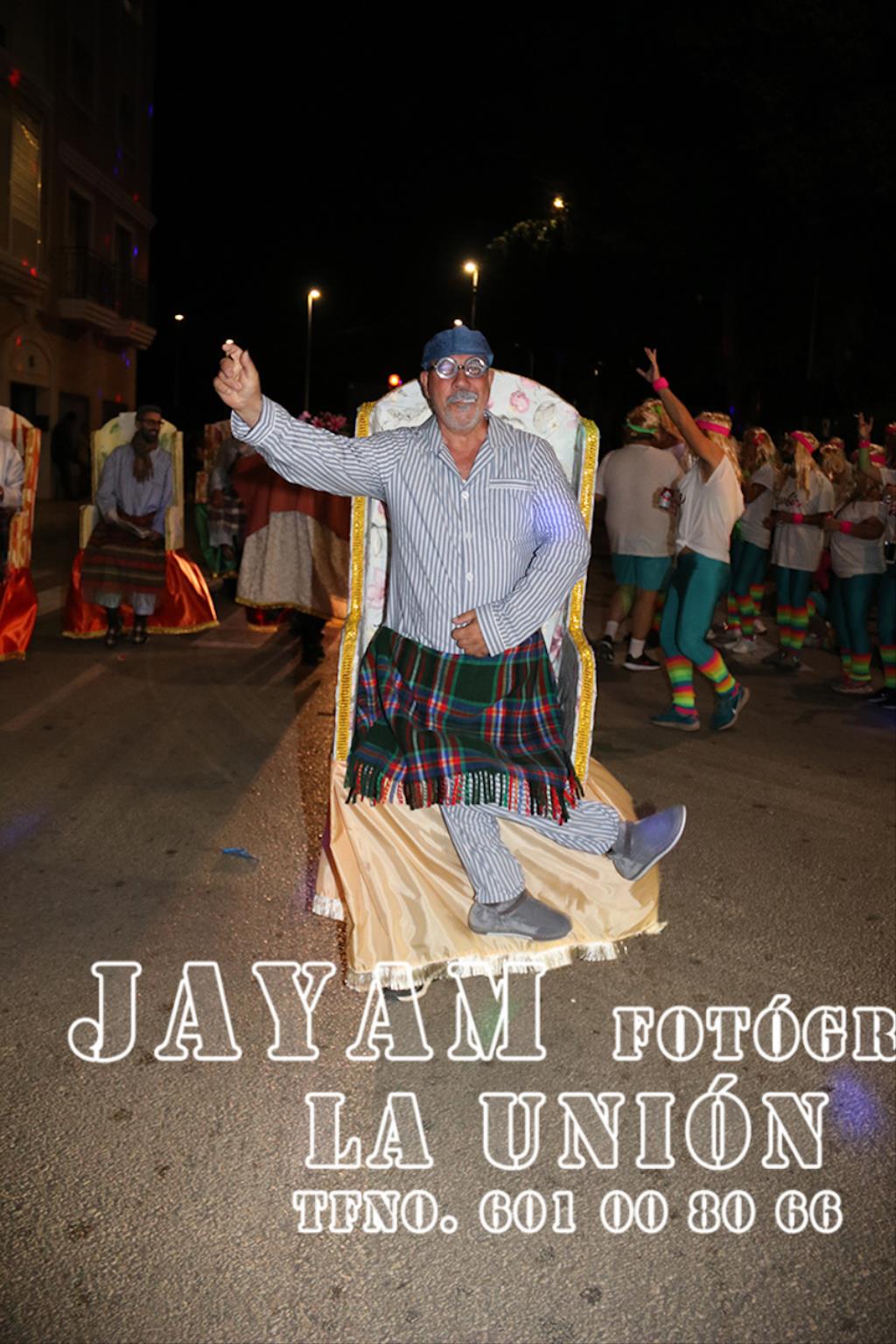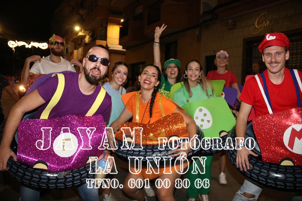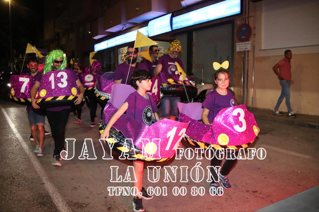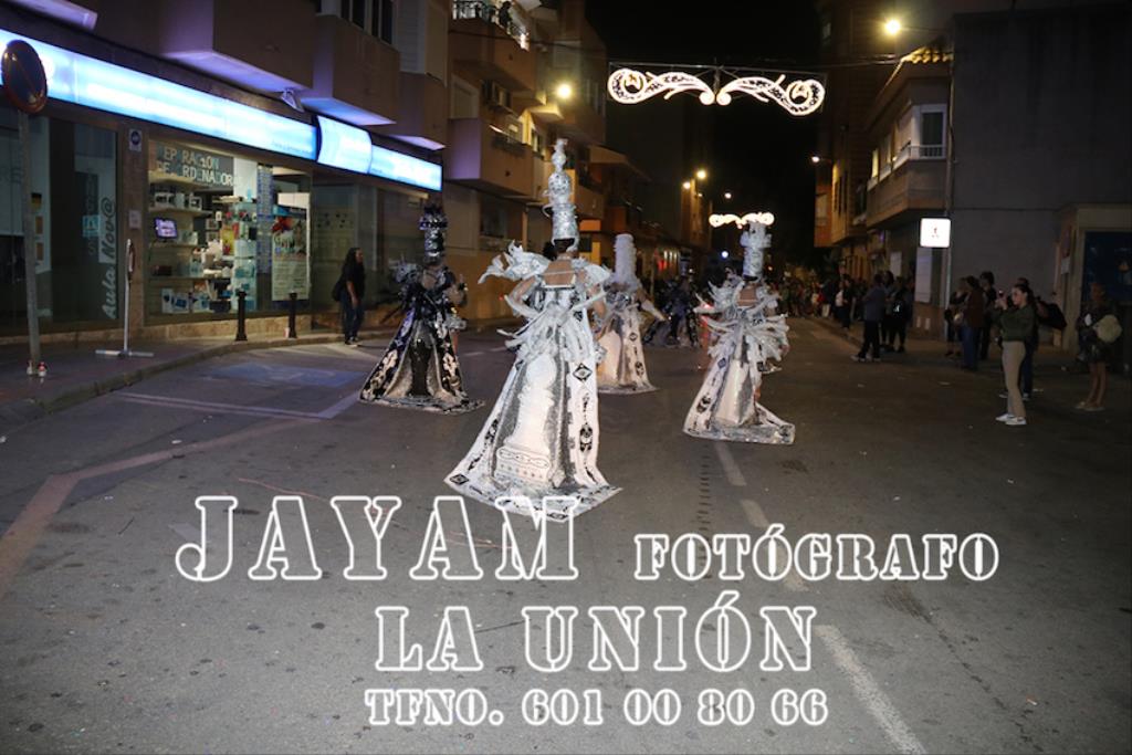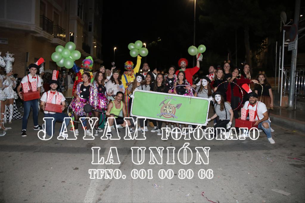 Destacar la gran variedad de disfraces ofrecidos por los participantes, que dieron colorido y arrancaron sonrisas entre el numeroso público. También hay que resaltar la presencia desfilando de unos cuarenta carthagineses y romanos de las históricas fiestas de Cartagena, entre los que figuraban los personajes principales del Senado, Escipión y Emilia Paula, siendo la dama romana interpretada por la unionense María Robira. El apunte emotivo fue el segundo puesto de 'Comparsa Amalia', cuya fundadora y que da nombre al grupo falleció hace un año, pero que sus seres queridos han querido seguir adelante y dedicaban su presencia en esta edición (y el posterior premio) a ella.