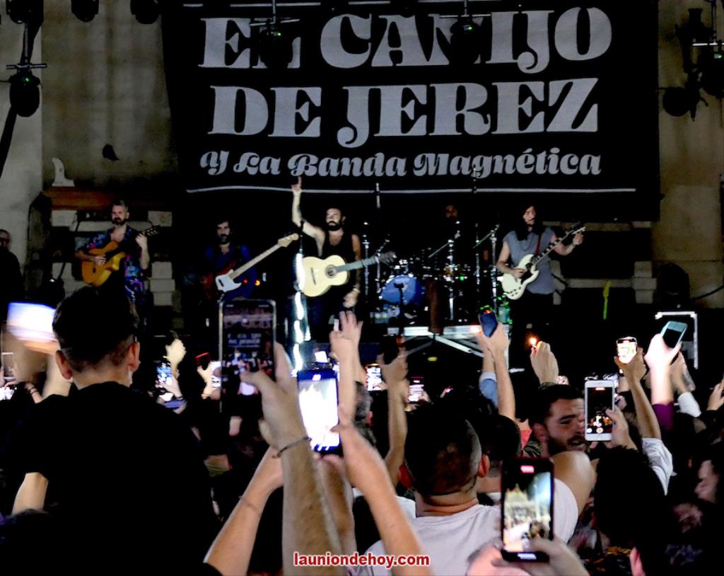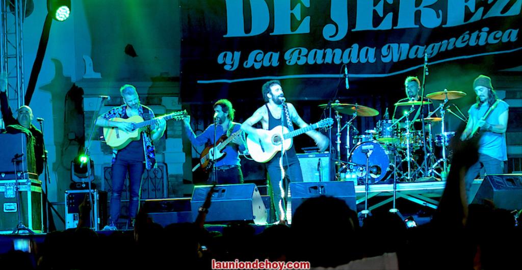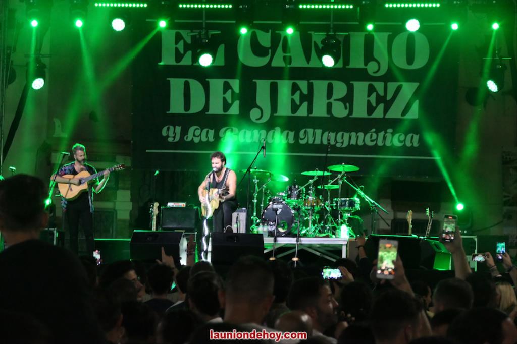 Ha sido la gran noche musical de las Fiestas del Rosario tanto por la multitud como por la complicidad entre público y artistas, en esta caso ‘El Canijo de Jerez’ y un grupo de brillantes secuaces de las guitarras y la batería. Para algunos fue un agradable descubrimiento, pero para la mayoría de los espectadores fue disfrutar y cantar a la par la mayoría de los temas ofrecidos, lo que refleja la popularidad de Marcos del Ojo Barroso, el auténtico nombre de este cantautor jerezano, que ofreció temas muy rítmicos demostrando su dominio en varios estilos, como pop y flamenco rock de quien fue fundador de ‘Los delinqüentes’ y que inició su carrera en solitario hace una década. Otro aspecto a destacar es su capacidad de establecer conexión con el público, ya sea con sus comentarios, sus gestos y, para acabar, lanzarse a la masa.