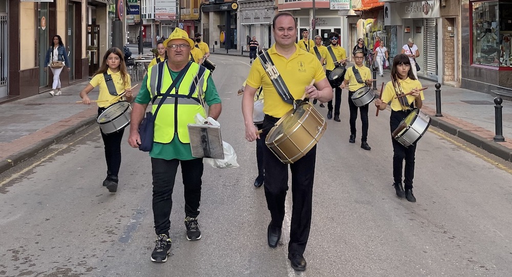 En las imágenes, podemos ver a los componentes de esta banda que participaron en dicha diana, que como siempre entre otras muchas calles recorrió la arteria principal del municipio minero, así como el núcleo de estas fiestas, la plaza Joaquín Costa.