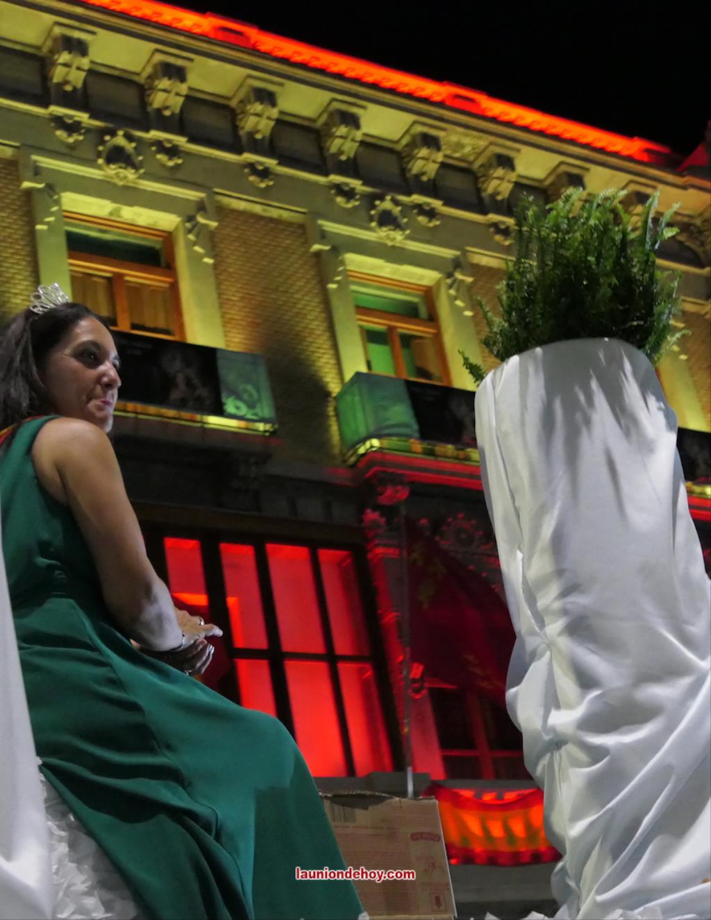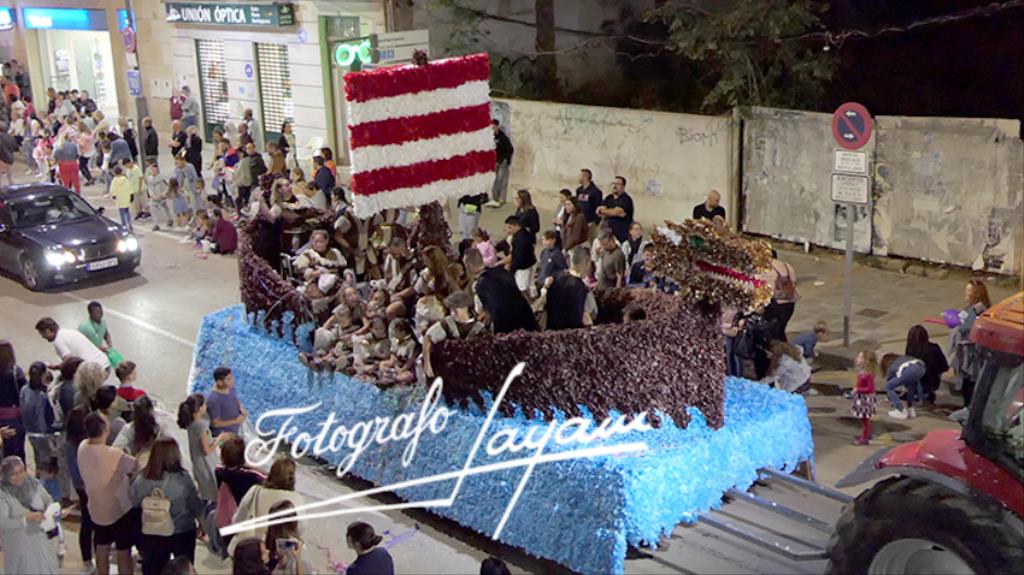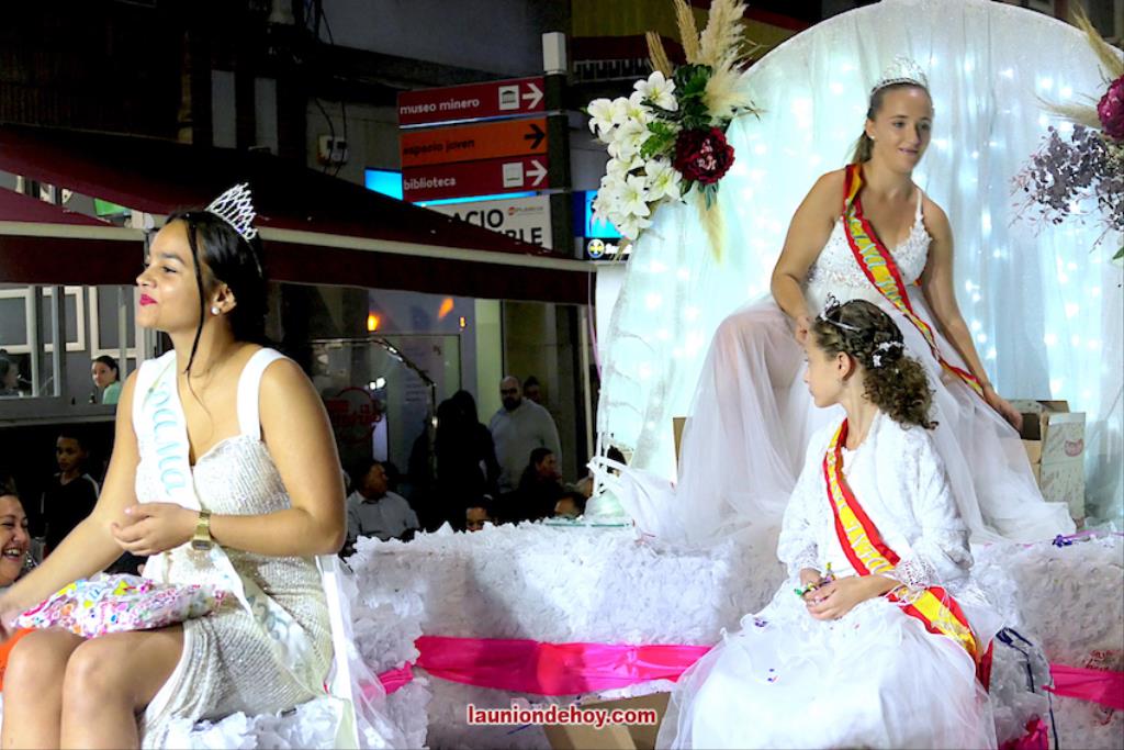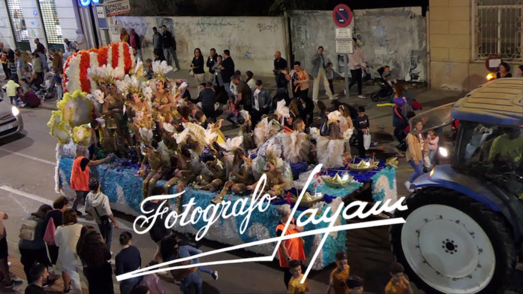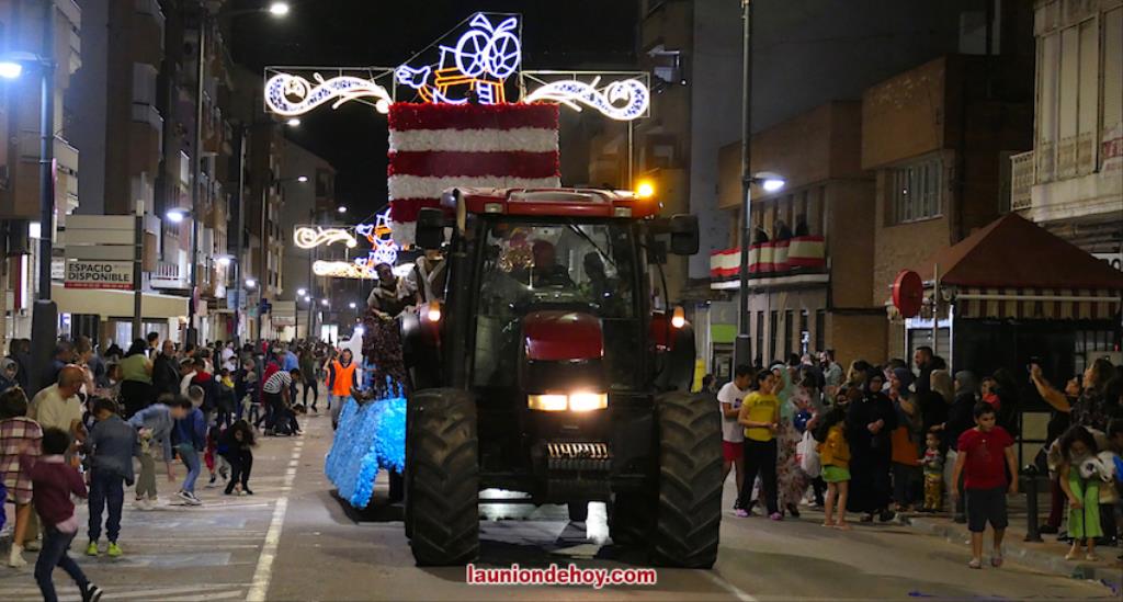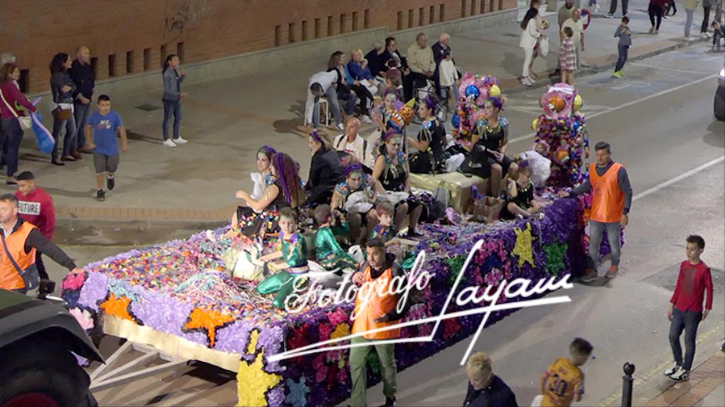 En cabeza, detrás de efectivos de Protección Civil y un coche patrulla de la Policía Local, iba la banda de música de la agrupación del Cristo de los mineros, comenzando a continuación la sucesión de carrozas unionenses tiradas por tractores, como Valkiria, Galera, Destellos y las cuatro que llevaban a la ‘realeza festera’. Hay que añadir las dos de las comparsas ‘Fantasía a color’ y ‘Peché’ de la vecina localidad del Llano del Beal y el barco pirata de la Federación de Peñas de La Unión.
