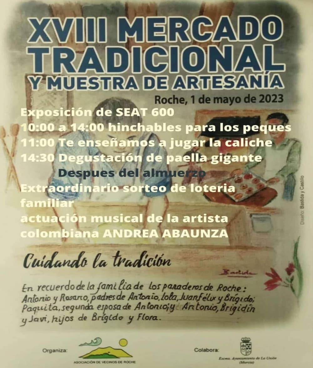 La décimo octava edición se celebra este lunes, uno de mayo, a partir de las diez de la mañana con variados puestos, juego de caliche, hinchables infantiles, exposición de vehículos del Seat 600, arroz gigante, rifa familiar y la actuación de la colombiana Andrea Abaunza. Organiza la asociación de vecinos rochera con la colaboración del Ayuntamiento de La Unión.