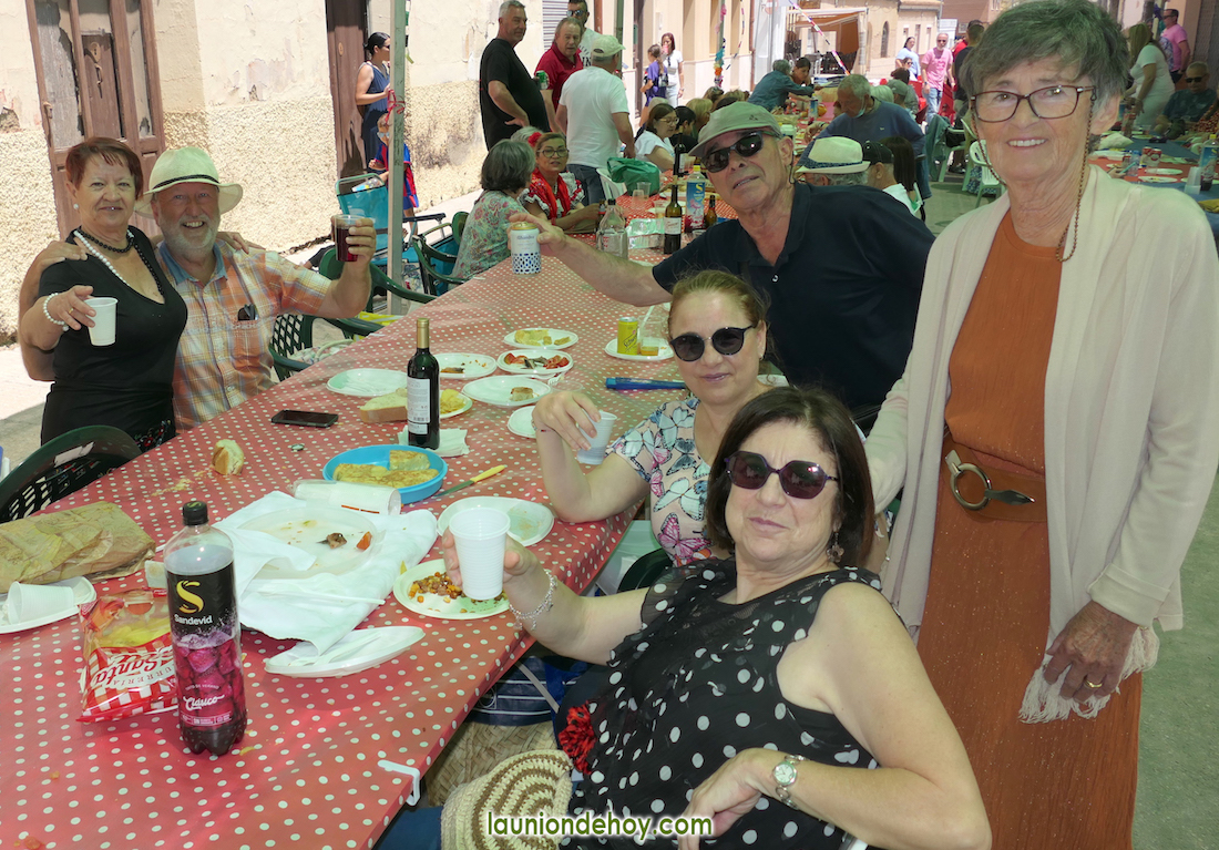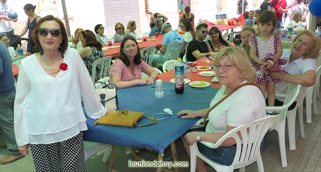 La calle Polavieja se convirtió en un gran comedor con motivo de la Cruz de Mayo organizada por las amas de casa de Portmán, colectivo presidido por Rosario Milán, que ofreció un gran arroz popular como acompañamiento a los diferentes productos traídos por los asistentes en una jornada muy animada, que también contó con animación musical. Entre los visitantes estuvieron el alcalde, Pedro López, y los ediles David García, Leticia Eea y Ana María Rodríguez, además de integrantes de las candidaturas de MC y PSOE de caras a las elecciones del 28M, que viéramos.