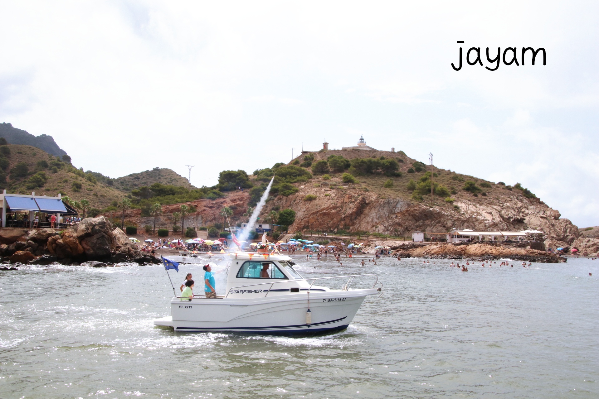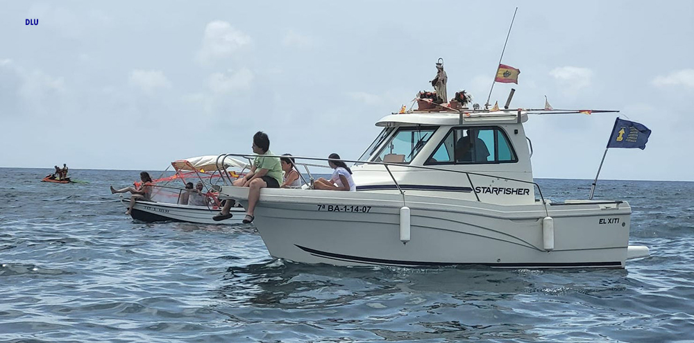 Algunos de los hombres de la mar de Portmán celebran por la mañana del 16 de julio la festividad de la Virgen del Carmen sacando desde el puerto de 'La farola' un barco en el que va una pequeña imagen de la patrona, arropada por otras embarcaciones que se suman a esta iniciativa.