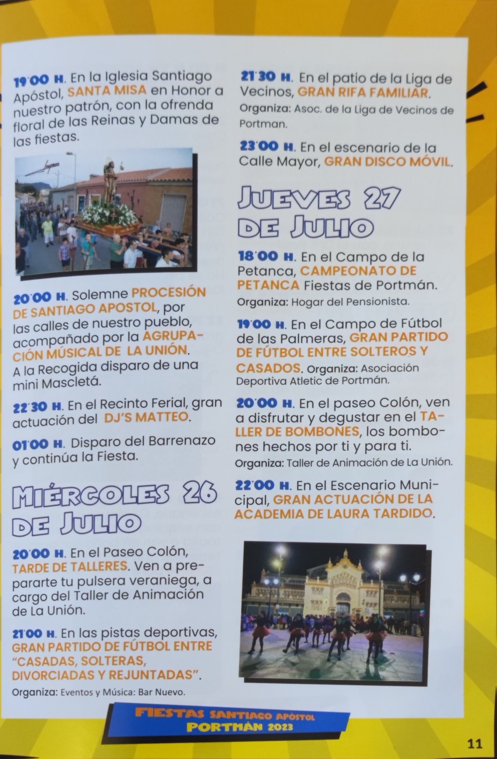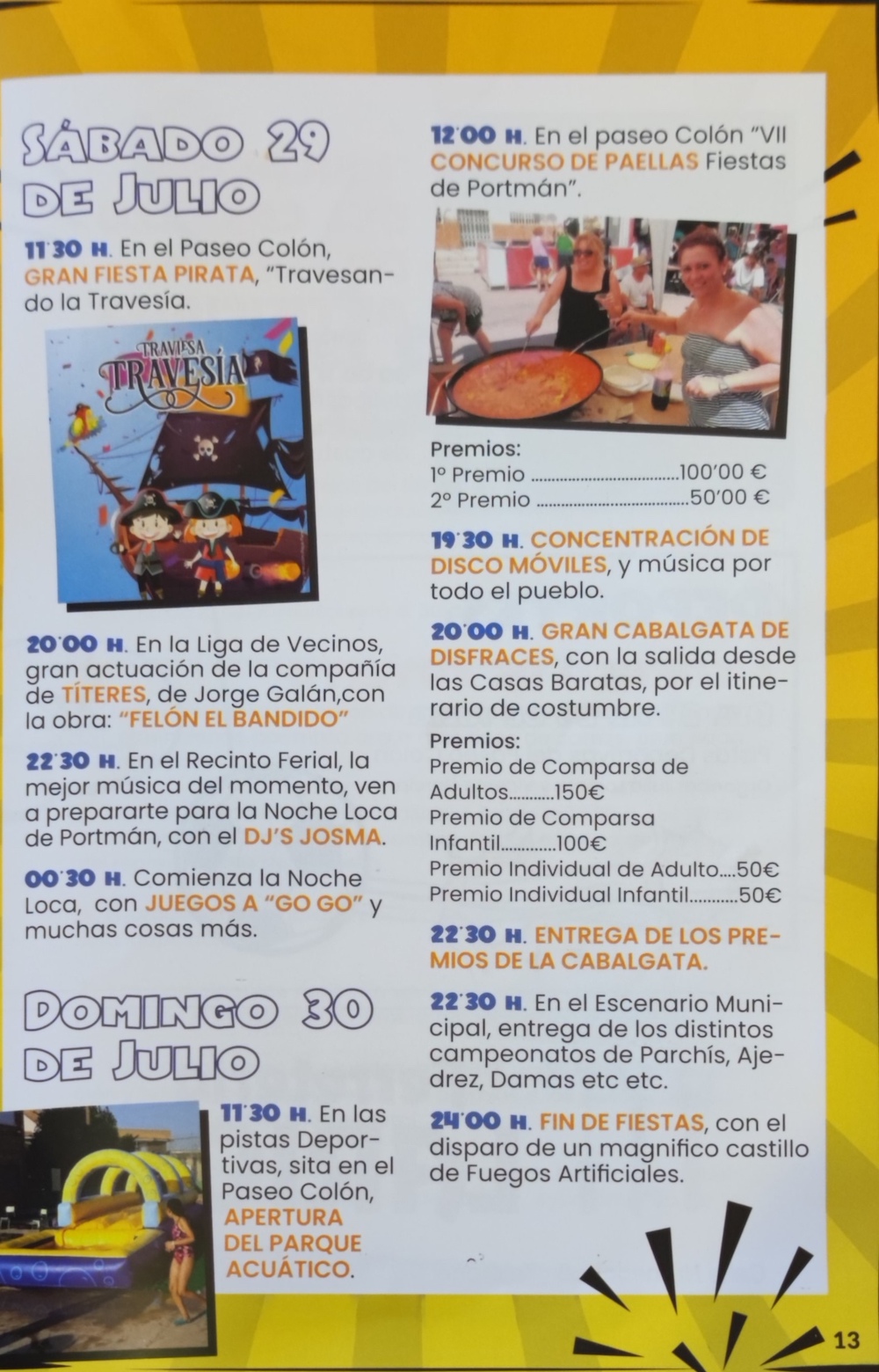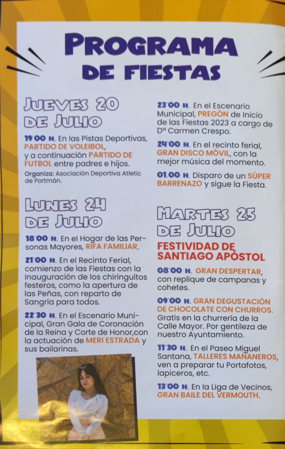 El programa central se desarrolla desde hoy hasta el domingo, comenzando con la gala de proclamación de la corte de honor, el pregón de Carmen Crespo y la actuación de Meri Estrada. El martes son los actos en honor al patrón, Santiago Apóstol, y también hay jornadas con cine, talleres, fiestas del agua y de la espuma, carreras de cintas, fiesta pirata, títeres, concurso de arroces, cabalgata de disfraces, concierto de 'La guarida', etc.