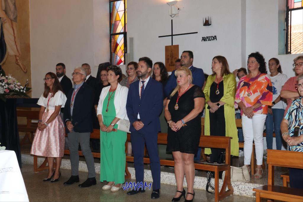 La misa también incluyó la ofrenda floral a la patrona y, al igual que la procesión, contó con la presencia de la corte de honor de las Fiestas de El Garbanzal, además de una amplia representación de concejales de los cuatro partidos representados en el Ayuntamiento (PP, PSOE, VOX y DLU) y de la Semana Santa Minera, con el hermano mayor, José Cortado, y, entre otros, la presidenta de la Agrupación de la Dolorosa, cuya misa anual era también la celebrada ayer tarde.