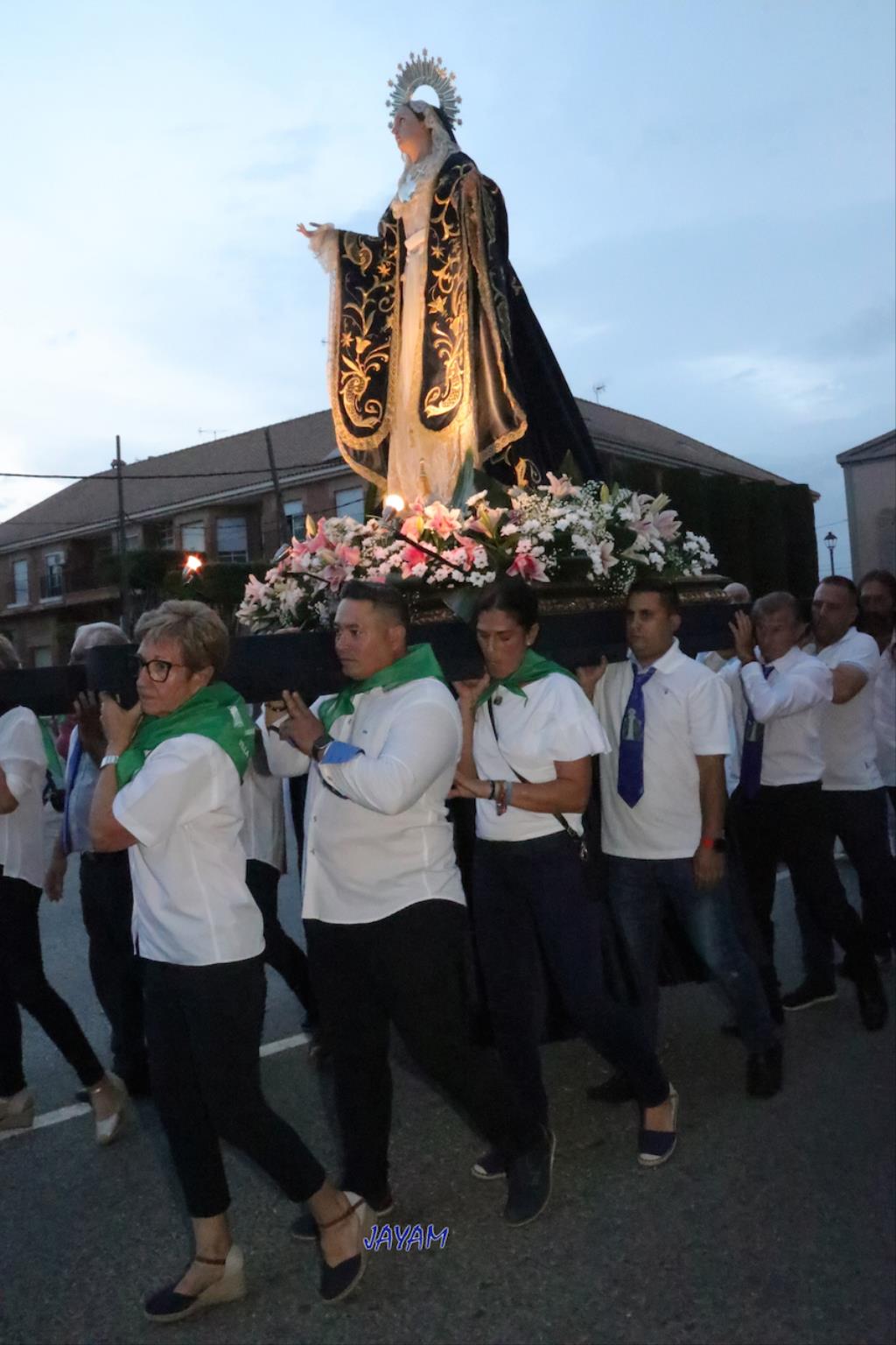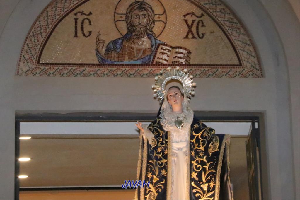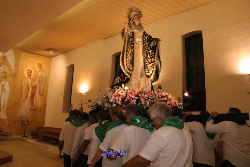 La Virgen de los Dolores, tras la celebración de la eucaristía en su honor, fue recibida a su salida del templo por saetas, para después recorrer su villa de El Garbanzal arropada por numerosos fieles y el sonido de la banda de música de la Dolorosa y de la Agrupación Musical La Unión.