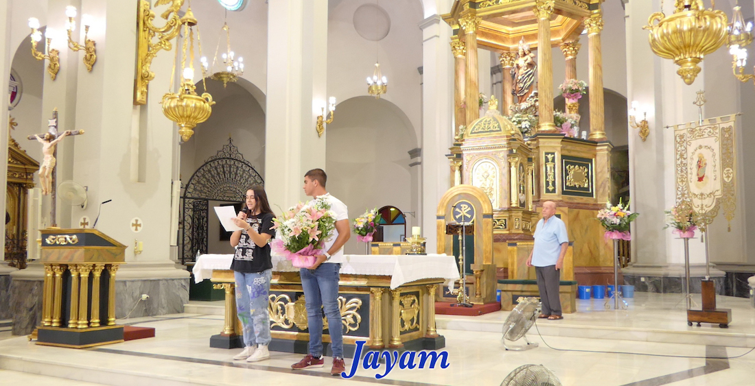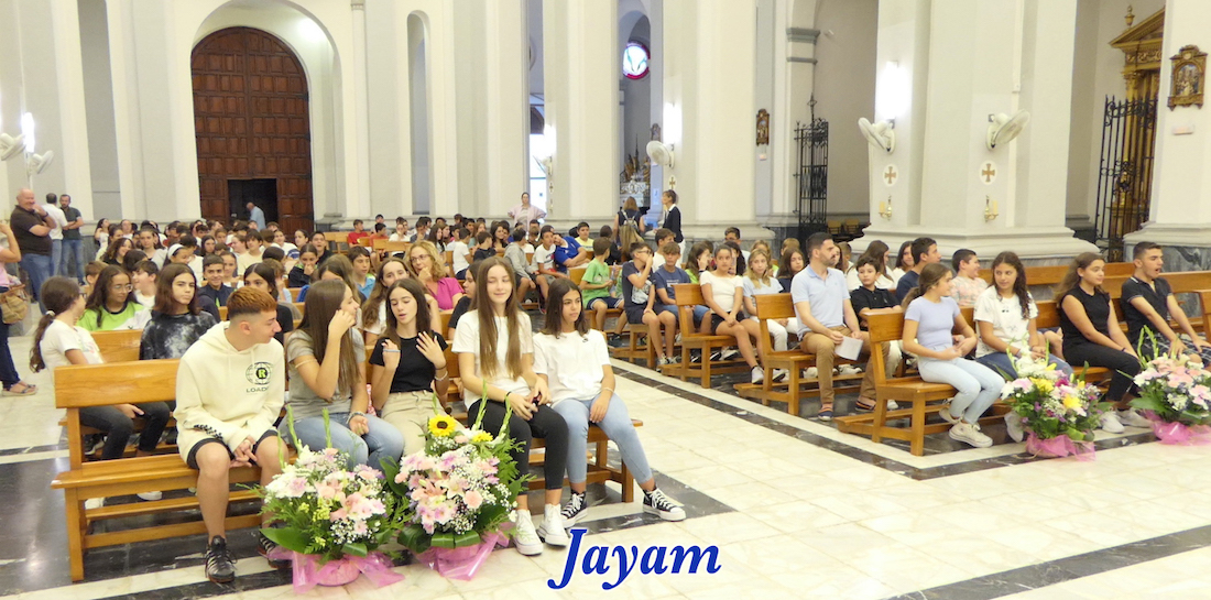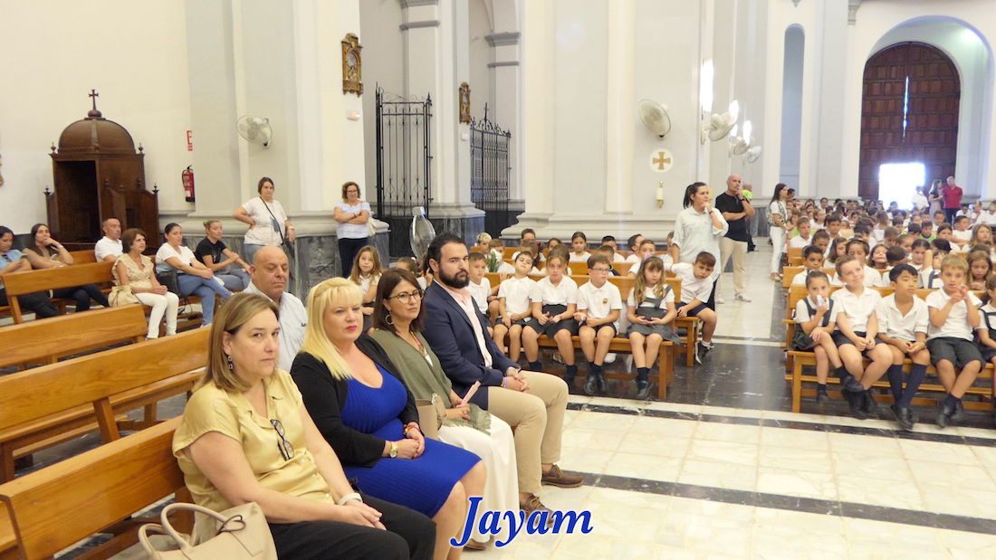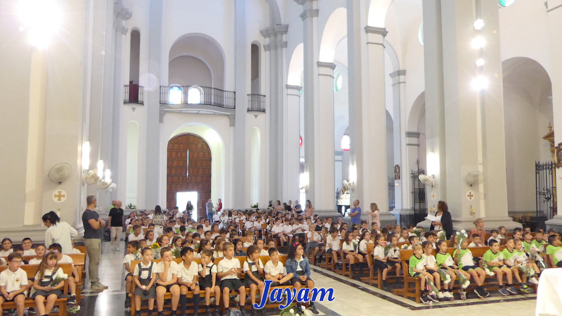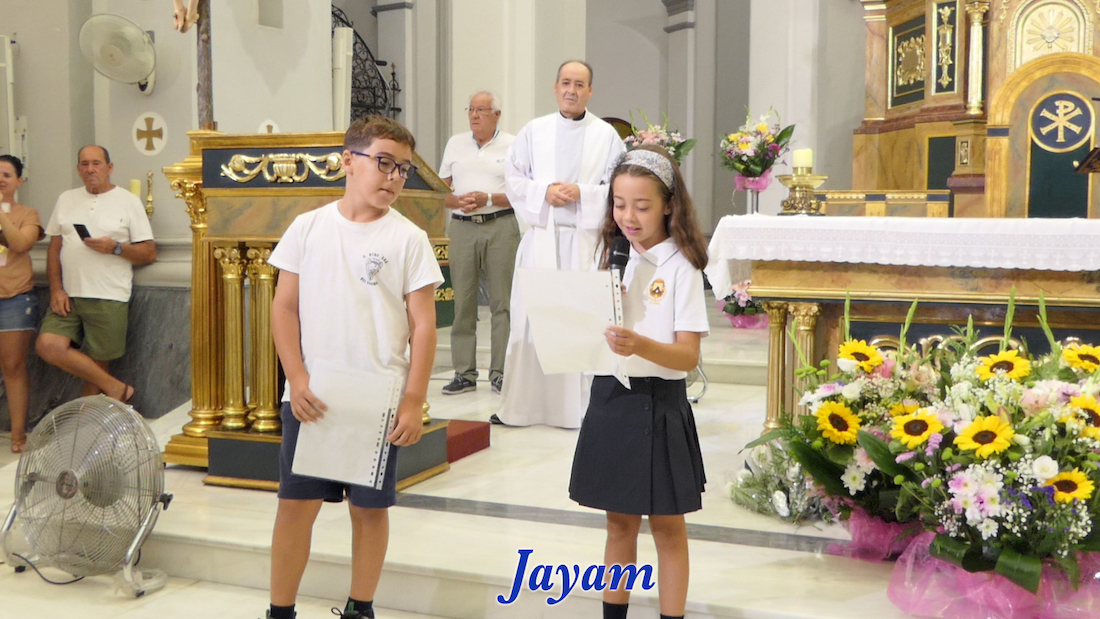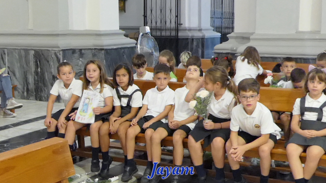 Las fiestas patronales han comenzado con la ofrenda de los alumnos de los colegios de La Unión a la Virgen del Rosario en su templo, en un acto en el que el párroco, Ginés Luis Vicente, ha explicado a los chavales el valor de una madre y el significado del 'rosario'.