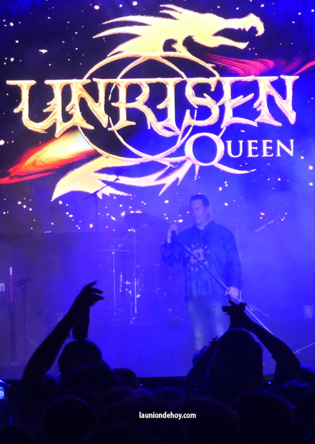 Dicho todo esto, volvemos a la cita de anoche en una plaza de Joaquín Costa llena de público girado hacia el escenario, pero con un 'lleno ideal', ése en el que todo está ocupado pero en el que no existe agobio para los presentes. Y empezó el concierto. Muchas ganas, pero, poco a poco, cierto desencanto. Muy buena la calidad musical del grupo y la voz de Rubén Sabater, pero las canciones apenas eran conocidas por los presentes. Valga como ejemplo que a los veinte minutos sonó la primera conocida ('A Kind Of Magic') y poco más hasta el intermedio a los tres cuartos de hora. Además, apenas había interactividad entre los músicos y los espectadores, además de una escenografía pobre, que se limitaba al quinteto actuante y a una pantalla donde se ponía escenas variadas, algunas de vídeos del original cuarteto inglés. Aquí cabe decir, por lo que pudimos conocer, que el Ayuntamiento de La Unión no autorizó los fuegos que lleva 'Unrised Queen'. La tragedia de Murcia está muy reciente, nos decía una cualificada fuente municipal.