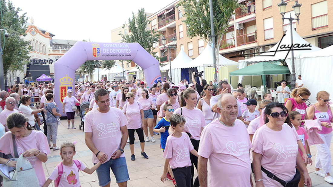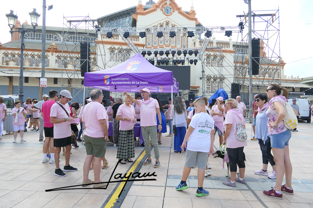 La marcha solidaria que organiza la junta local de la Asociación Española contra el Cáncer y el Ayuntamiento de La Unión, ha sido un éxito total, pues agotó con creces las quinientas camisetas creadas para esta edición y ha tenido una marcha muy amena en la que han participado bastantes familias completas, en bastantes casos con mascotas.
