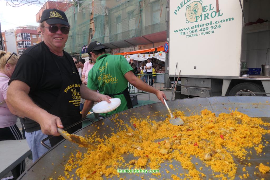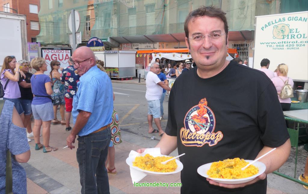 El arroz gigante regresaba a las Fiestas de La Unión, agotándose la paellera que acogió el gigantesco arroz con carne y pimientos elaborado a fuego de leña, que fue servido por el cuarteto de cocineros de 'El Tiro' y por el equipo del gobierno municipal liderado por el alcalde, Joaquín Zapata, con dos puntos de recogida de platos y con un estupendo ritmo de entrega.