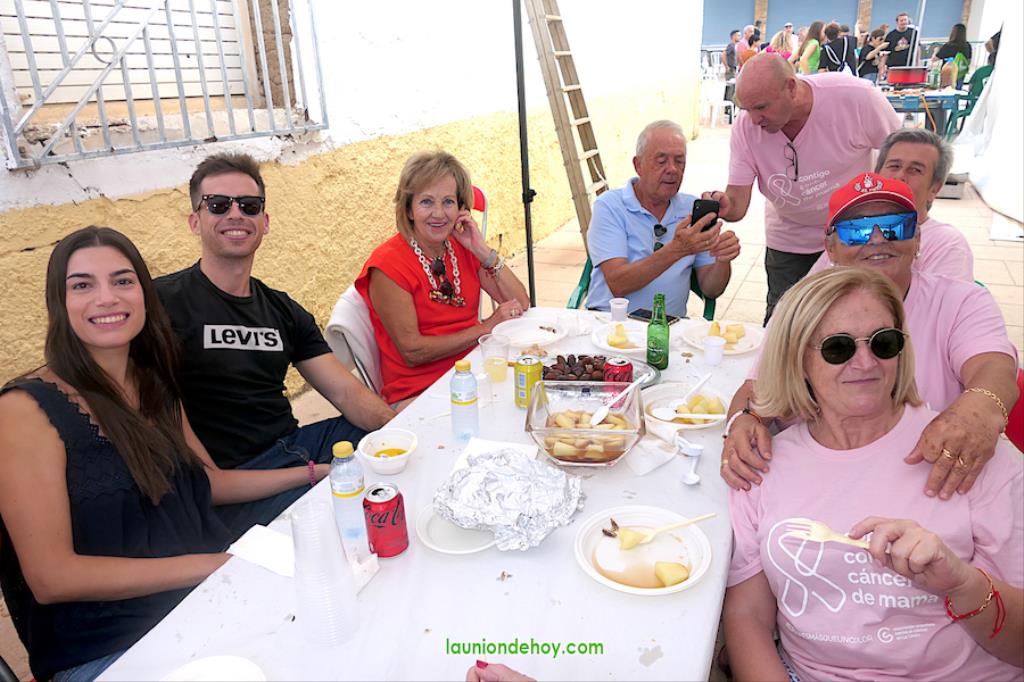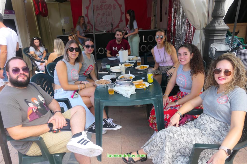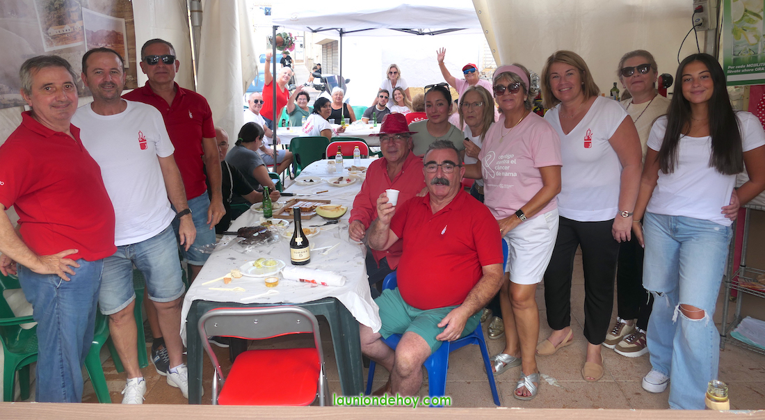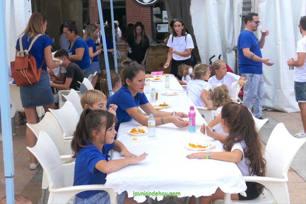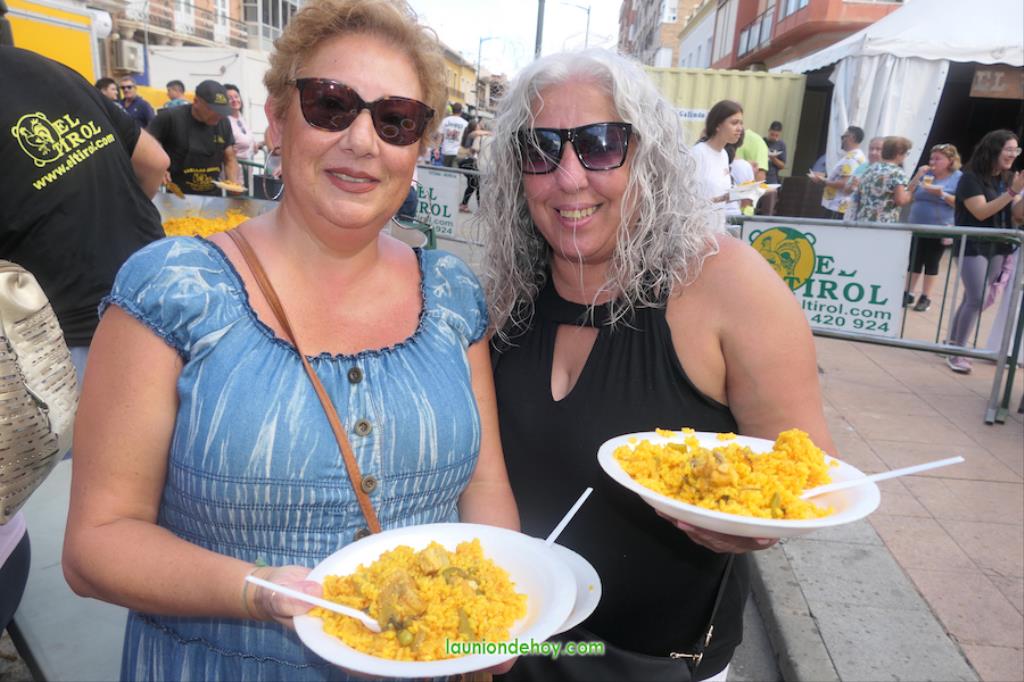 La paellera gigante se vació tras servir mil platos entre peñistas, vecinos y visitantes en un animado mediodía festero, que también contó con calderos y otros manjares elaborados por las peñas, además de tertulias y algún que otro baile.