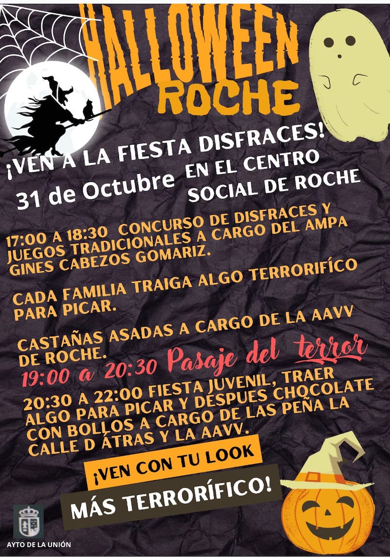 El pasaje del terror es la primera vez que construye en Roche y ha surgido por la voluntad de servicio hacia los demás residentes del pueblo de un grupo de vecinos, que han contado con el apoyo de asociación de vecinos, AMPA del CEIP Ginés Cabezos Gomariz, de las peñas festeras y del Ayuntamiento de La Unión.