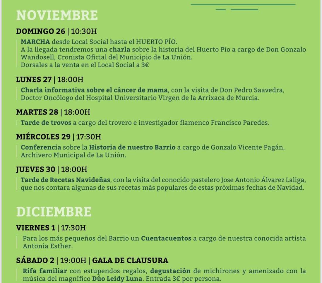 Un trayecto senderista entre el local social y Huerto Pío inicia este domingo un programa de actividades que se prolongará hasta el 2 de diciembre y que también incluye charlas, trovos, recetas navideñas, cuentacuentos, música, degustación de michirones, rifa familiar y una conferencia sobre la historia del barrio.