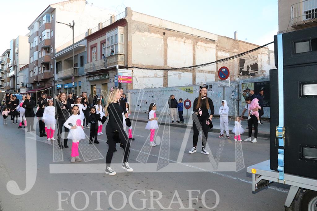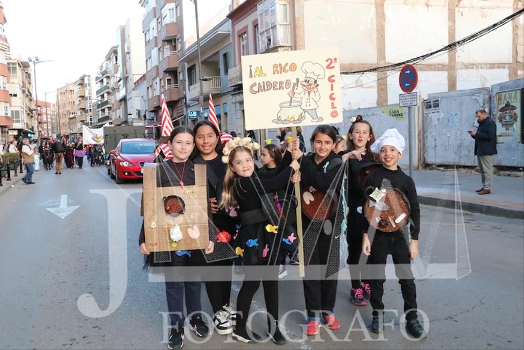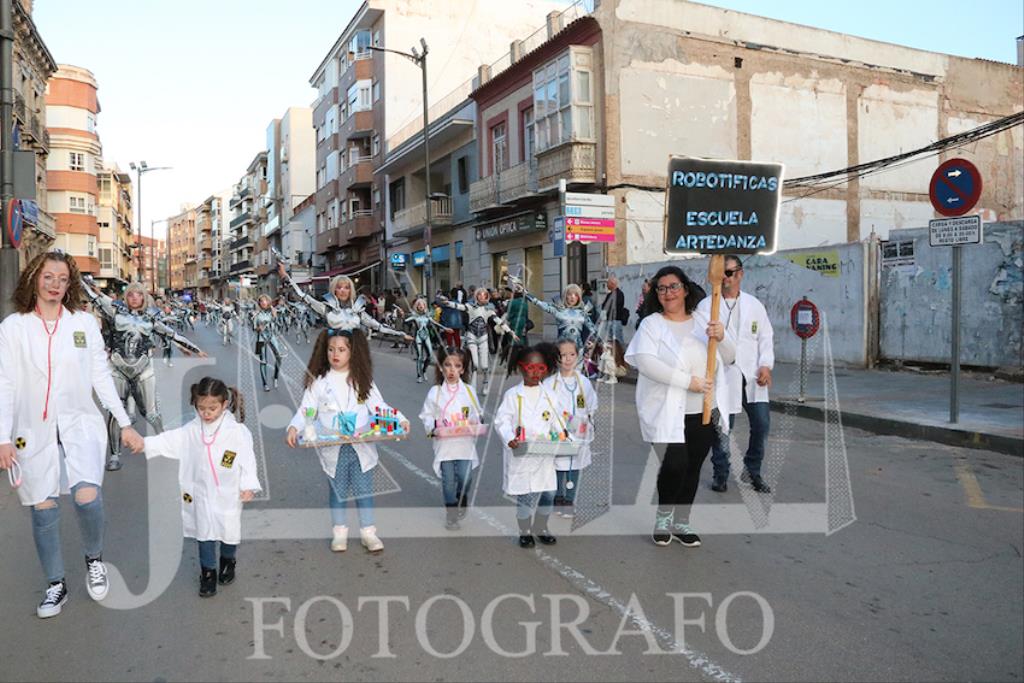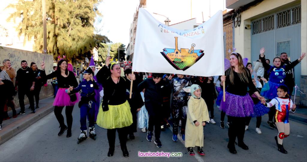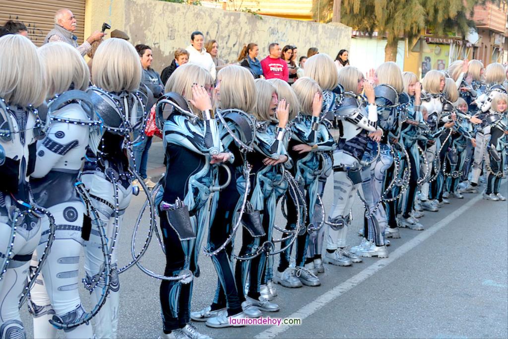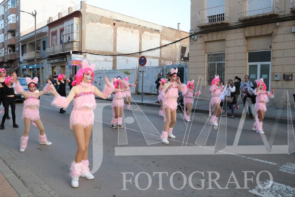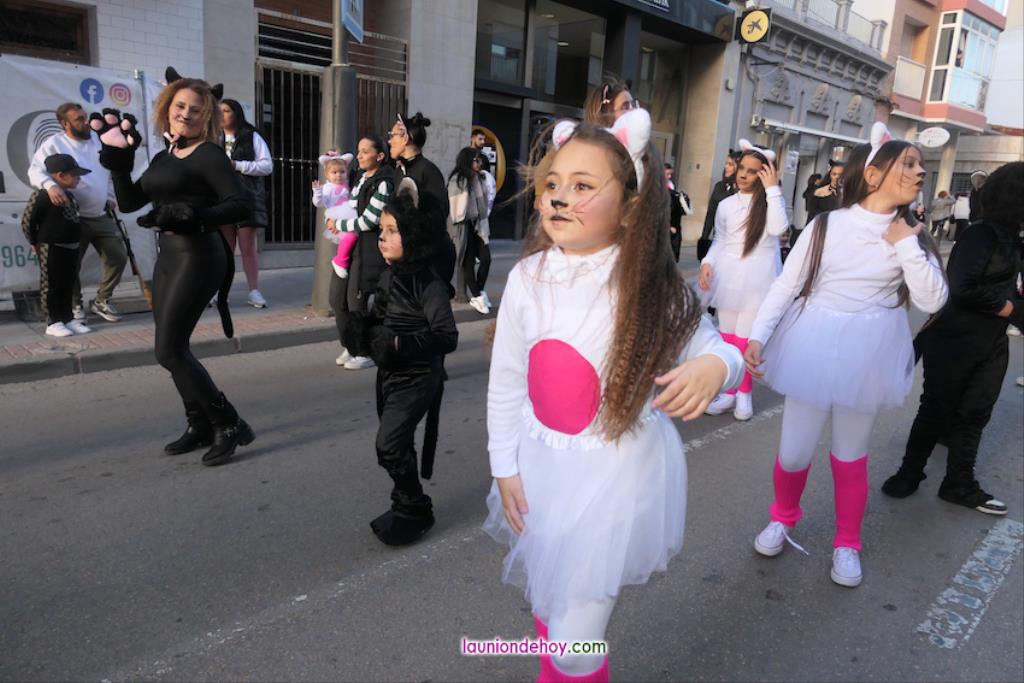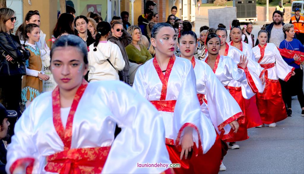 El colegio Herrerías abría la marcha con disfraces que representaban un recorrido por imperios de la historia. Detrás, los bailes de la academia de Laura Tardido y la nueva 'Comparsa con arte' que se ha creado en La Unión, habiéndose estrenado con una treintena de componentes.