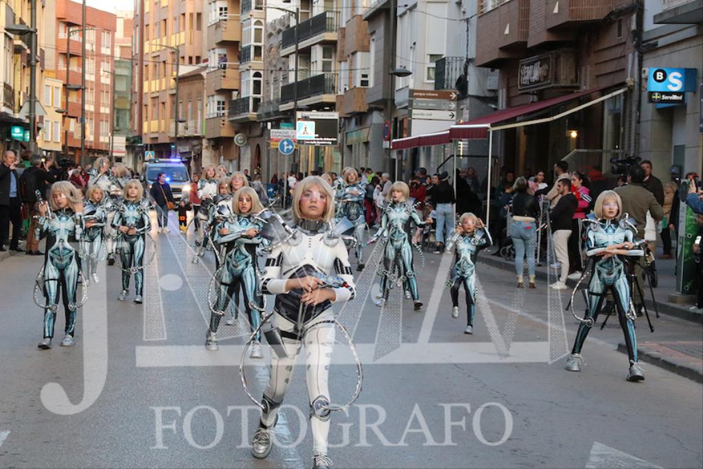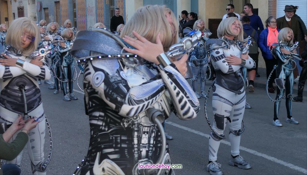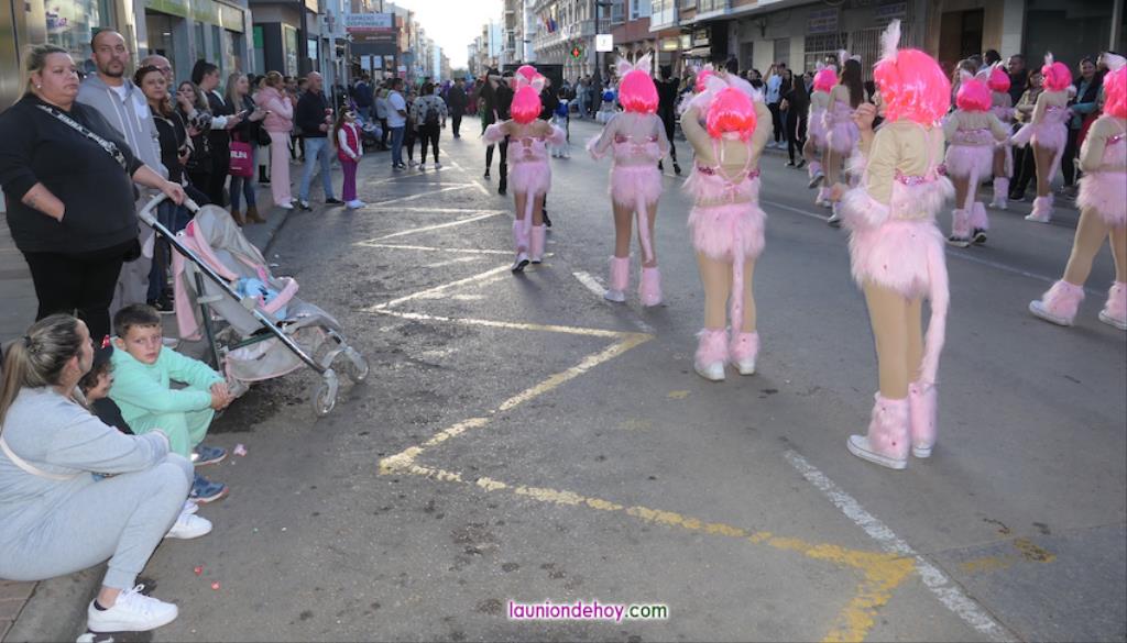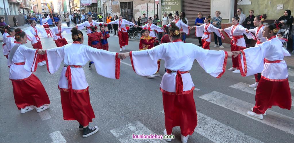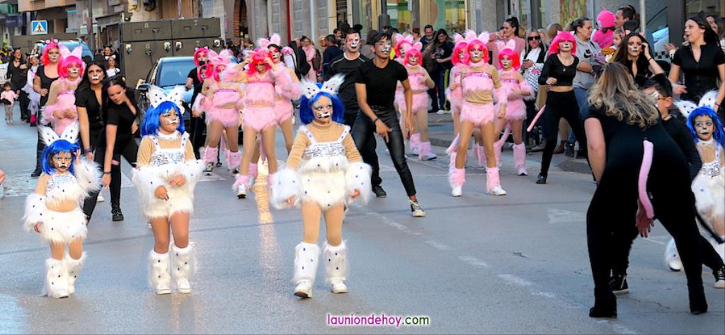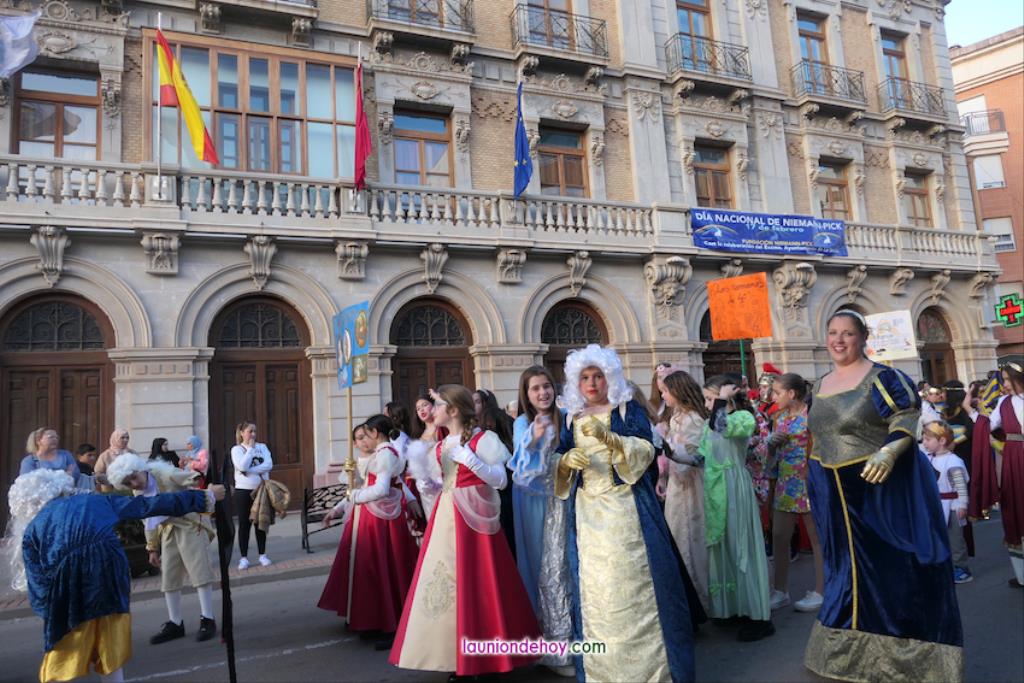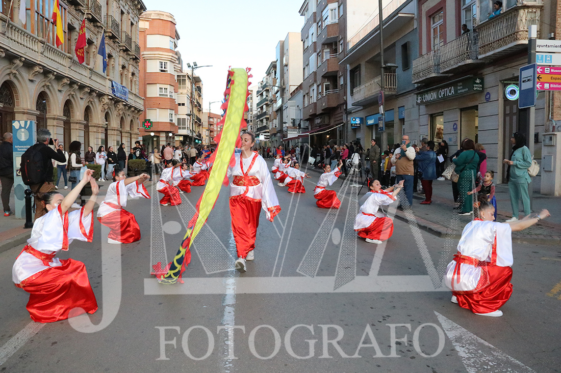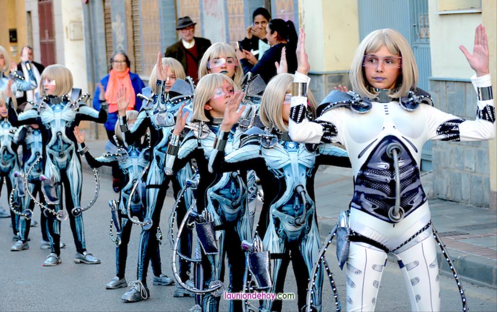 El colegio Herrerías abría la marcha con disfraces que representaban un recorrido por imperios de la historia. Detrás, los bailes de la academia de Laura Tardido y la nueva 'Comparsa con arte' que se ha creado en La Unión, habiéndose estrenado con una treintena de componentes.