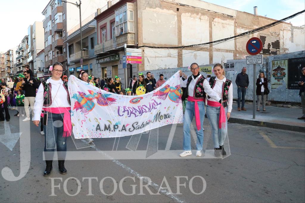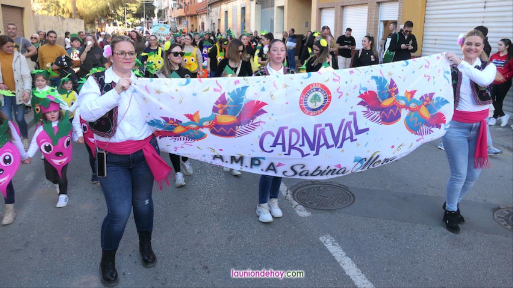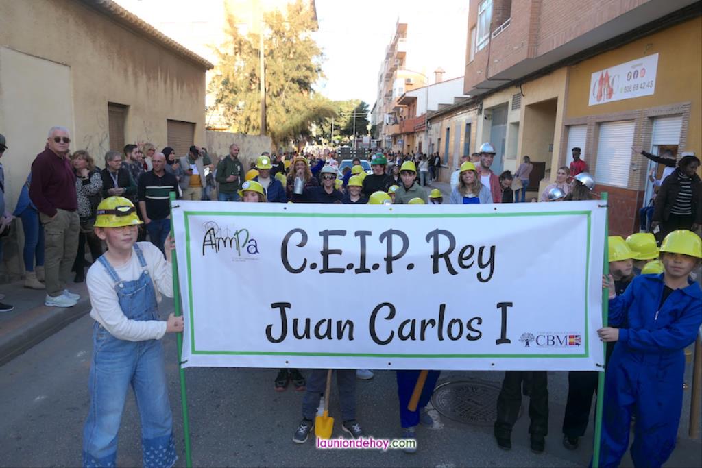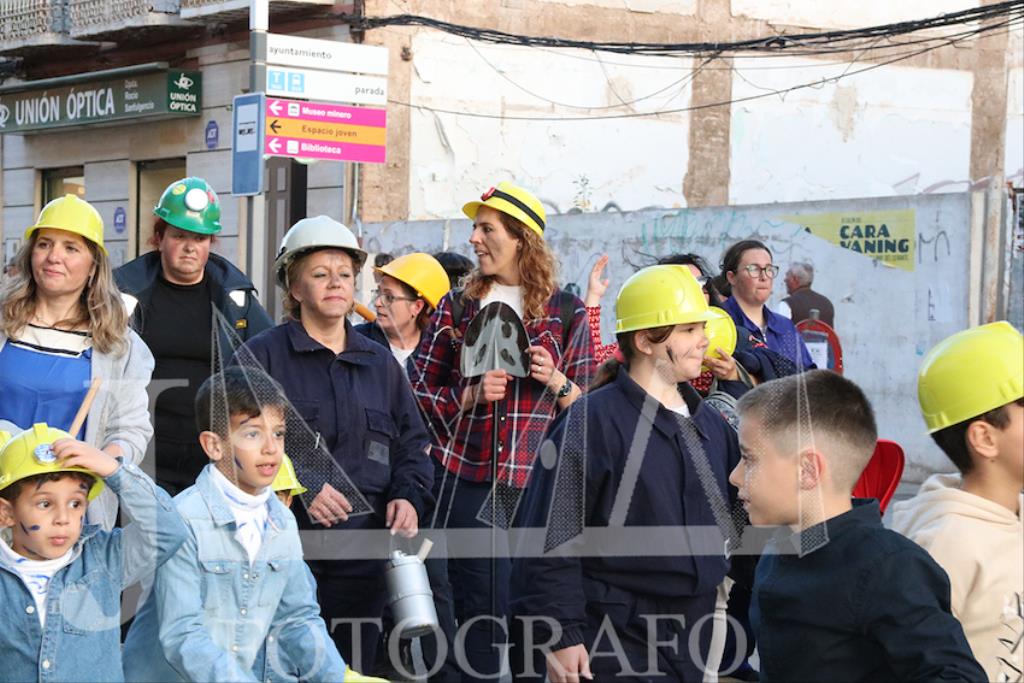 Han continuado apareciendo en el desfile los colegios. Rey Juan Carlos I ha rendido tributo a los mineros de esta tierra, mientras que la cooperativa de enseñanza Sabina Mora ha puesto en la calle una muestra de su carnaval escolar (pinchar aquí), que este año han dedicado a emblemas de la Región de Murcia.
