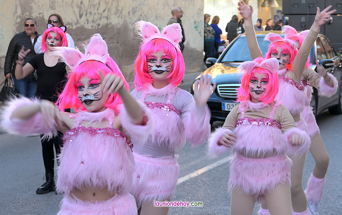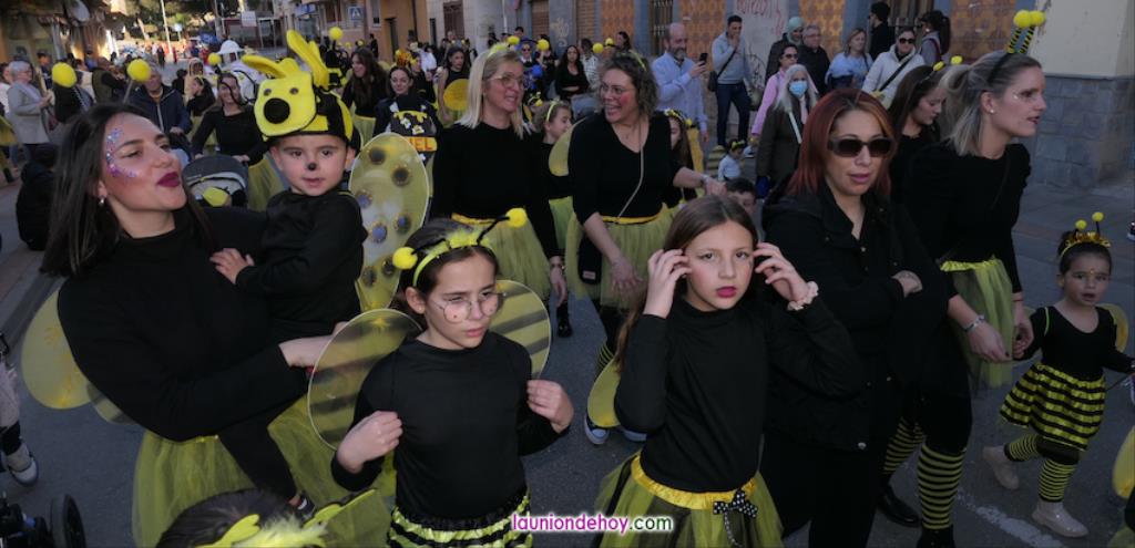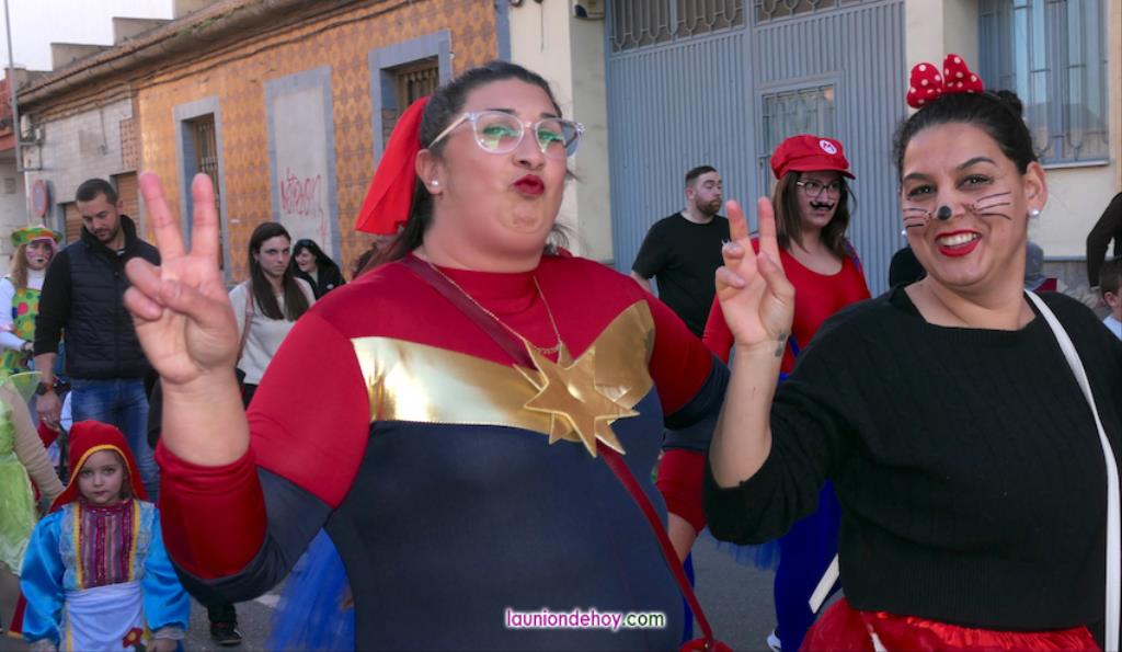 El gran desfile de disfraces y carrozas tiene lugar cada año en La Unión cuando llegan sus fiestas patronales en honor a la Virgen del Rosario, pero ello no quita que también se mantenga la llama del carnaval con otro desfile en febrero, que este año ha tenido lugar en la tarde del lunes en lugar del viernes anterior debido a que fue aplazado por un clima desapacible.