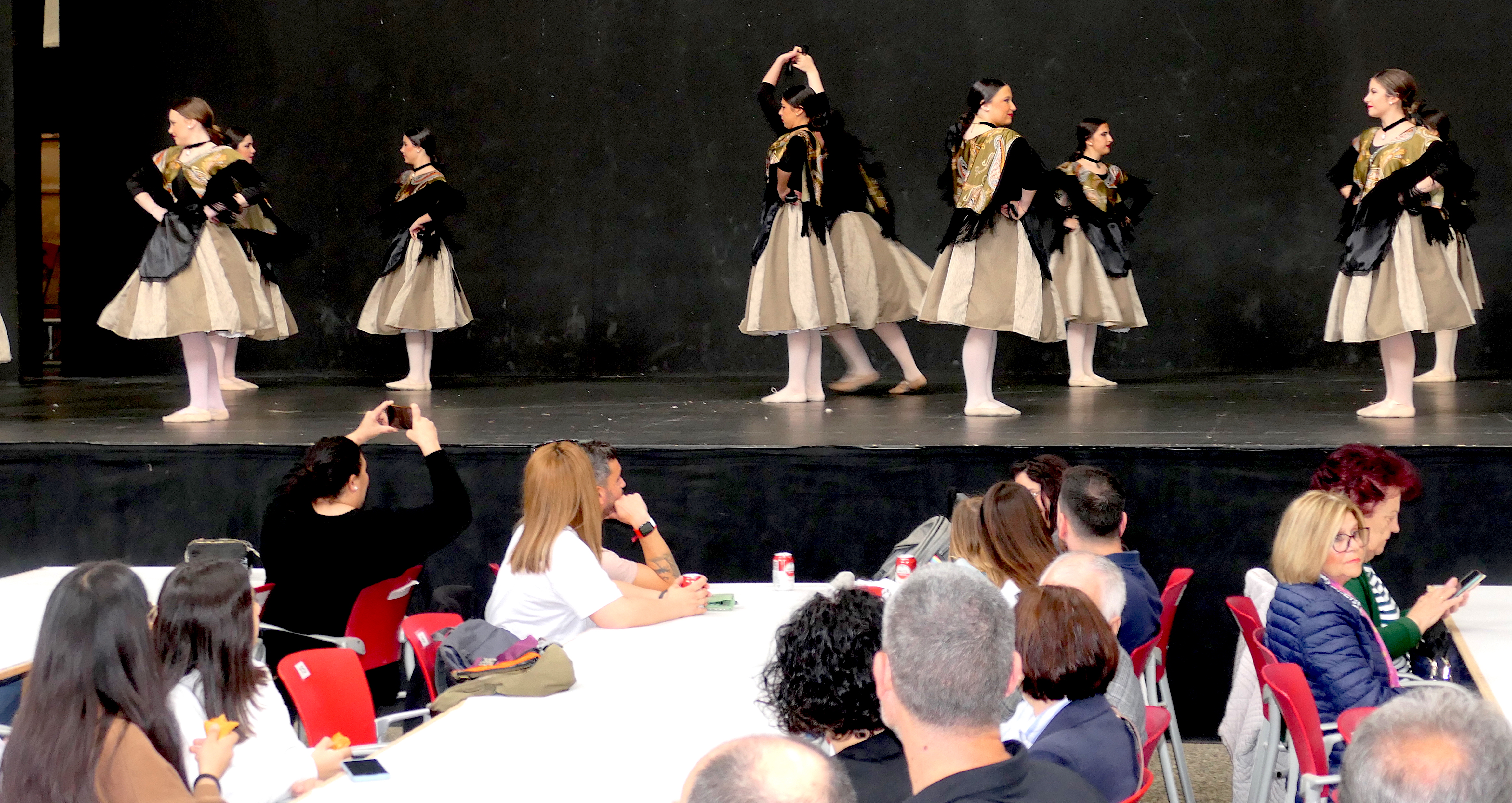La primera sensación al entrar en el modernista edificio era de un muy buen ambiente, con personas de muy diversas edades, la mayoría en núcleos familiares, dispuestas a pasar un ameno sábado de bailes y convivencia.