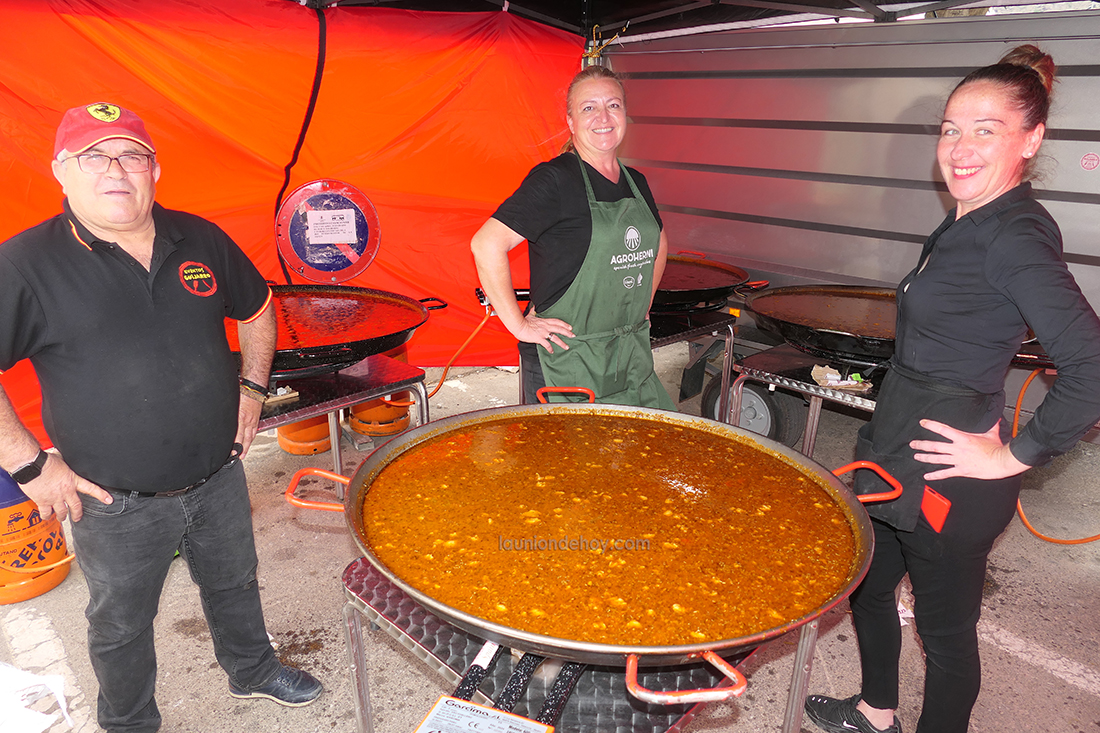 La iniciativa resultó un éxito de participación, como reflejaba que antes de comenzar las actuaciones ya estaban agotadas las reservas de los trescientos platos de arroces de secreto con boletos que elaboró en cinco paelleras en el exterior del modernista inmueble el equipo liderado por José María Guijarro.