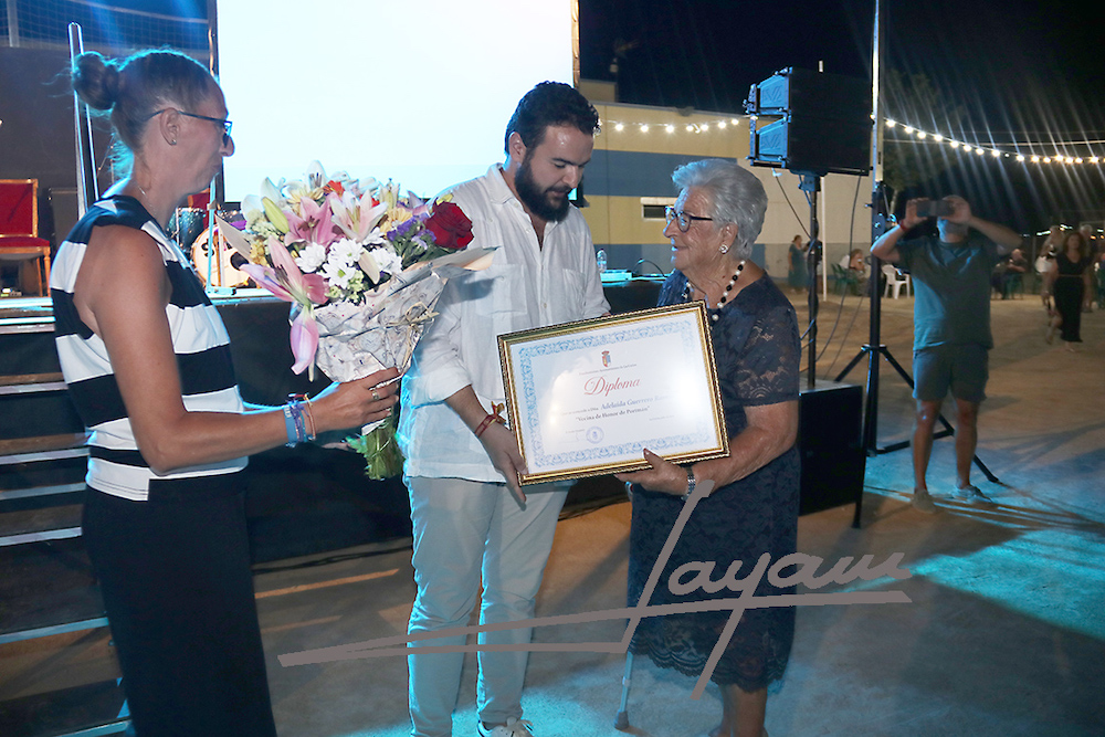 La gala de apertura de los festejos patronales contaron con el homenaje a personas de avanzada edad de la localidad, siendo el alcalde, Joaquín Zapata, quien entregó los diplomas. En la foto superior, Francisca Mateo Escámez.