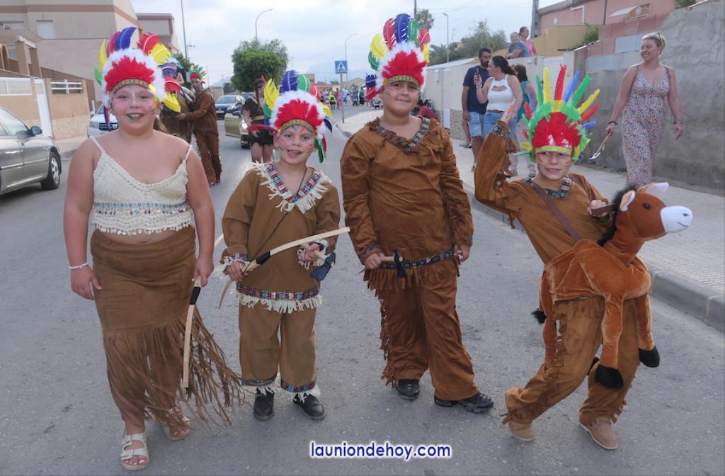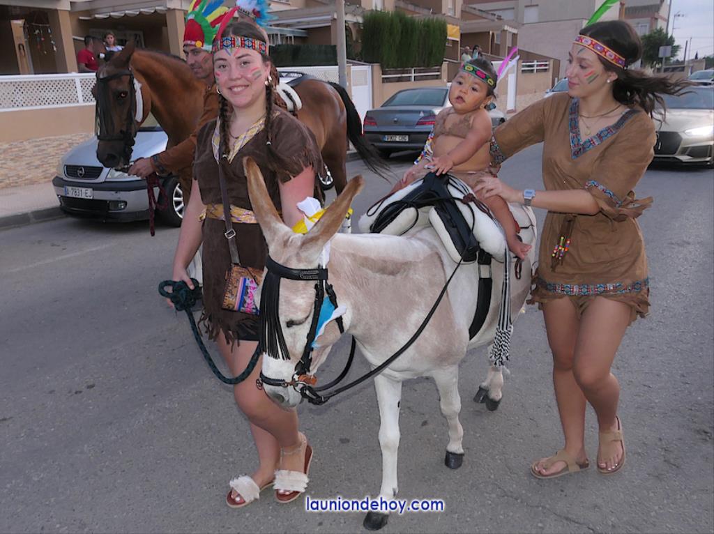 Fueron novedad, dentro de un grupo de indios con arcos y hachas, la yegüa 'Shakira' y la mula 'Alegría'.