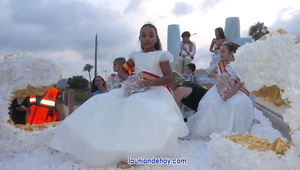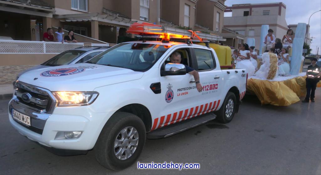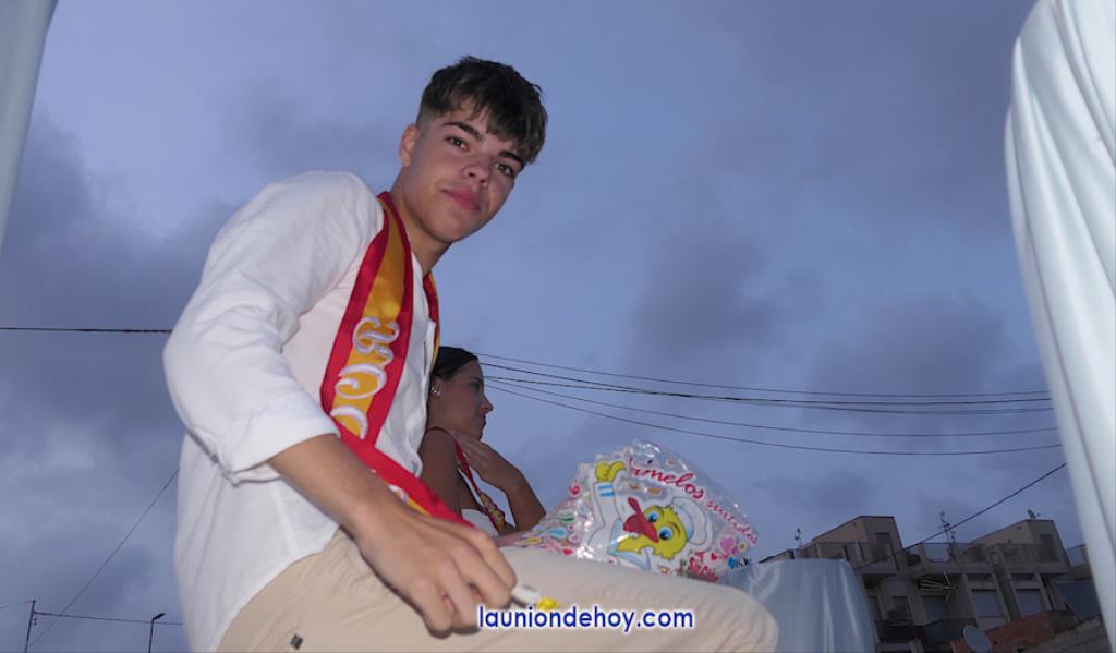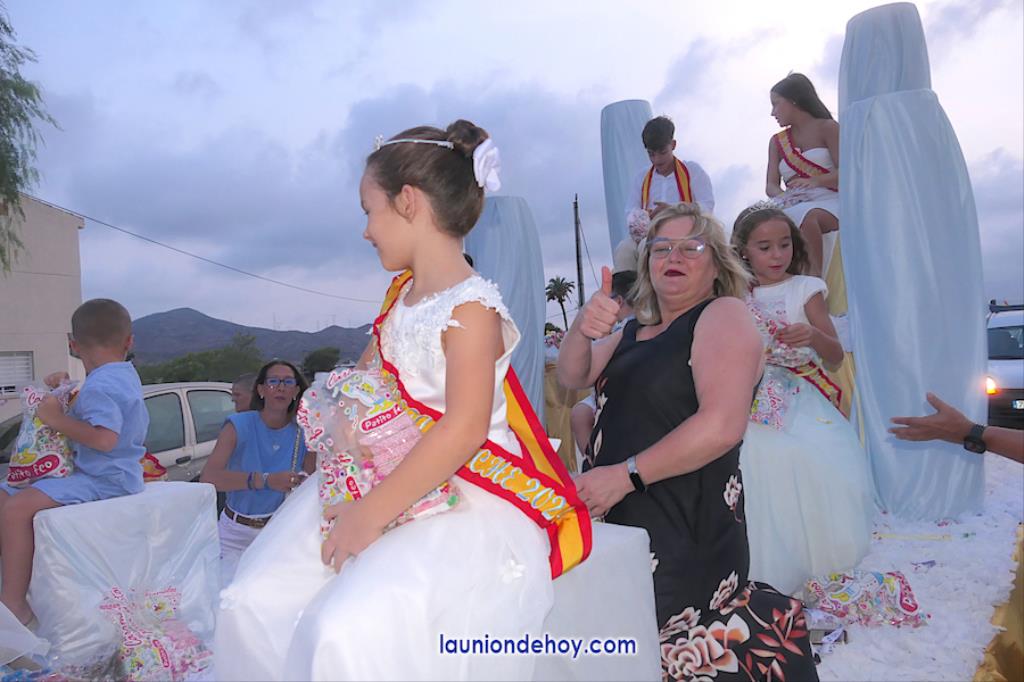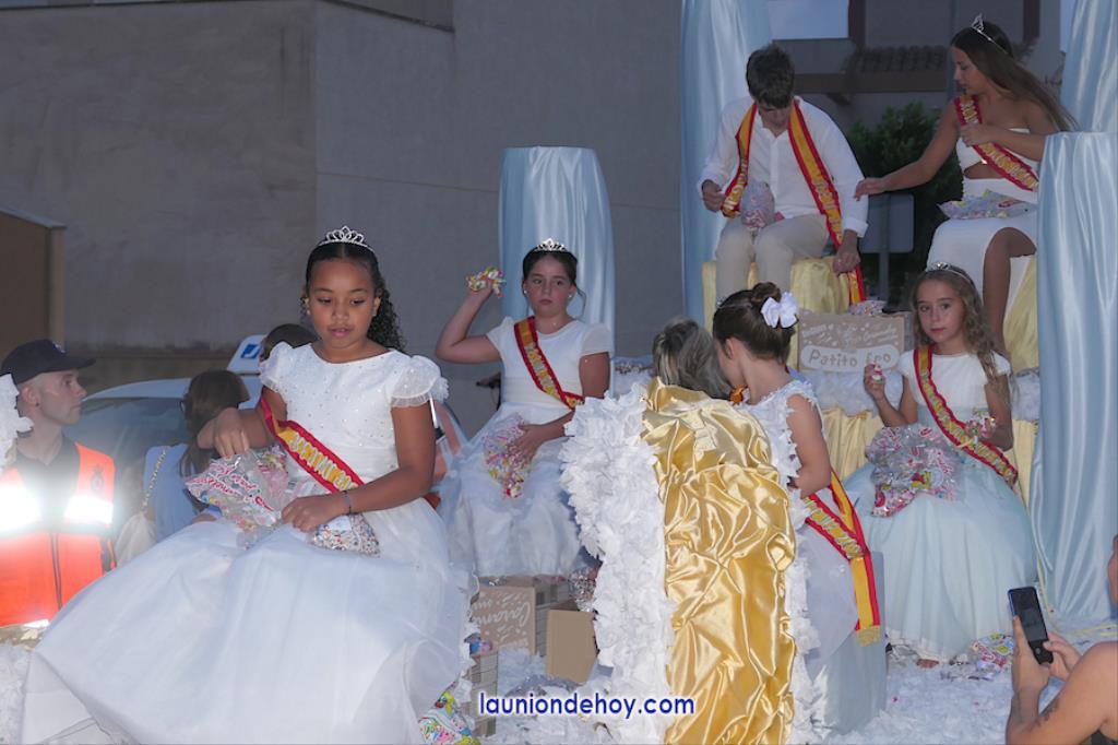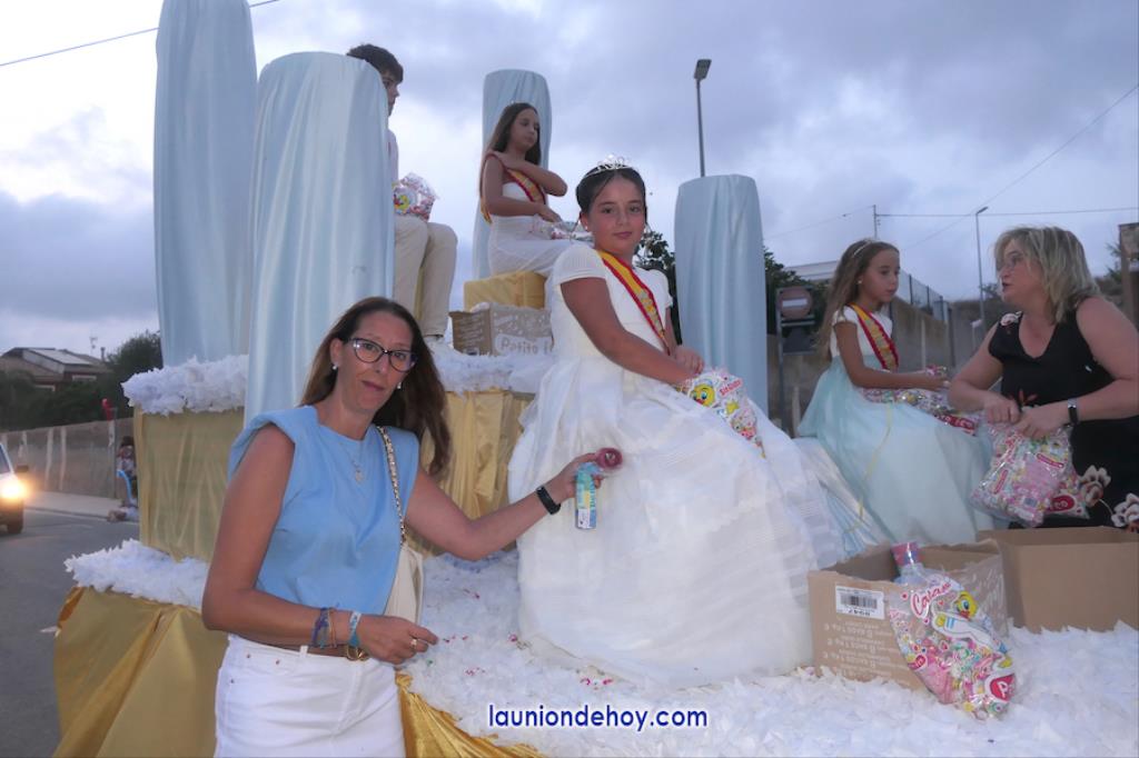 El cortejo lo cerró la carroza con la corte real de las fiestas, que iba tirada por el vehículo de Protección Civil de La Unión. Reyes y damas estuvieron lanzando caramelos al público desde el inicio.