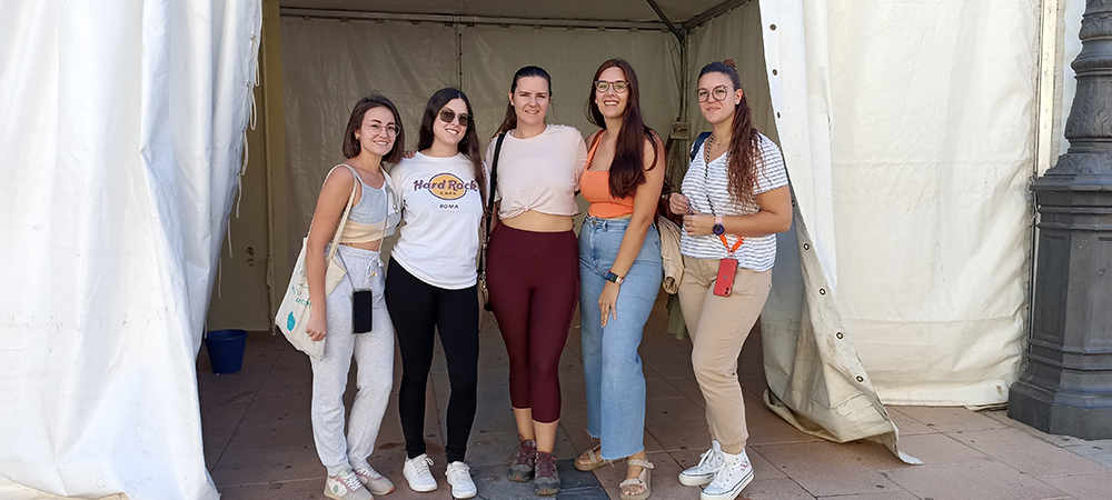 Este viernes comienzan las fiestas patronales de La Unión con epicentro en el recinto festero de la plaza de Joaquín Costa, donde hoy y en la matinal de mañana las peñas preparan sus casetas para la puesta en marcha nocturna. En la foto, chicas de las peñas 'Con cascos y a lo loco' y 'El reparo'.