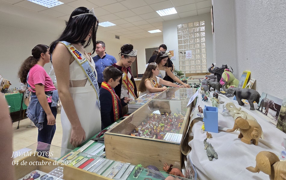 El alcalde, Joaquín Zapata, y una representación de la corte real de las Fiestas del Rosario inauguraron la exposición de colecciones de objetos que organiza Fundación Vedruna y que tiene como marco la antigua sede del Registro de la Propiedad en la calle Mayor de La Unión.