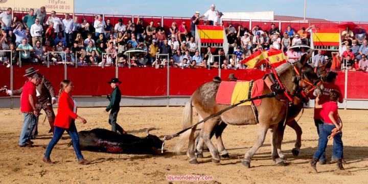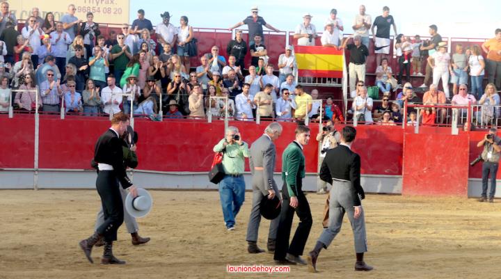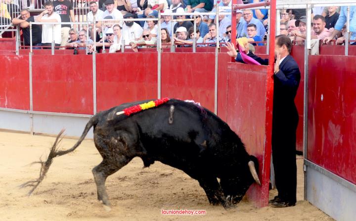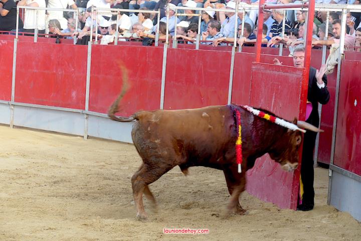 Que no se nos olvide hablar de los astados de la ganadería de Nazario Ibáñez. El más flojo fue el primero (cayó al albero varias veces), pero también el de mayor fortaleza (arrancó una barra de la barrera de una cornada), mientras que los dos últimos dieron (ya fallecidos) la vuelta al ruedo, por decisión presidencial, en base al buen rendimiento ofrecido. Recordar, por último, que ha sido un festival taurino sin picadores.