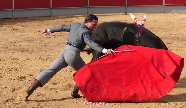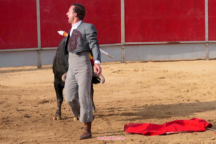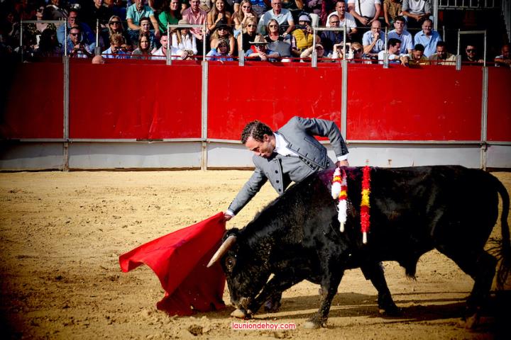El siguiente fue Rafaelillo ante un adversario que no le daba licencia para fiarse y que incluso en un momento le arrebató la capa. “¡Qué peligro tiene ese toro!”, escuché decir a un ‘enterao’ de este mundillo. Lo cierto es que Rafael Rubio no se amilanó, como reflejó que su vestimenta se tiñese de la sangre del novillo. Se ganó aún más al público y fue el primero en escuchar lo de “¡torero, torero…!”. Mató al segundo intento.