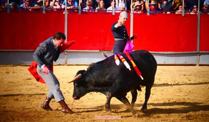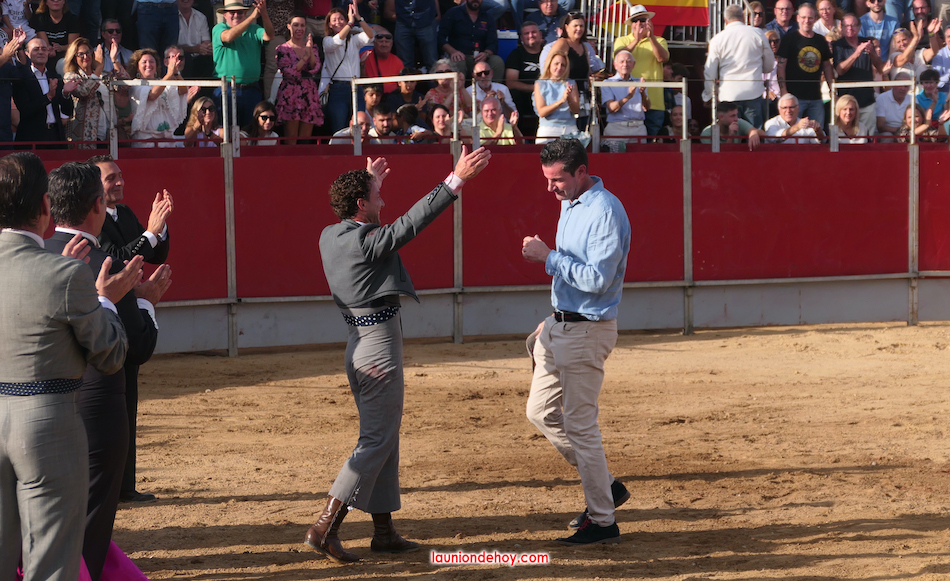 Una oreja que, ante la presión popular, se duplicó y vuelta al ruedo, itinerario que el murciano quiso hacer con José Mora, banderillo que en julio, en un festival celebrado en Francia, sufrió una gravísima cogida (perforación de vegija y varias operaciones) cuando iba a poner un par de banderillas. Alegre ver muy recuperado al también murciano.
