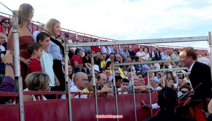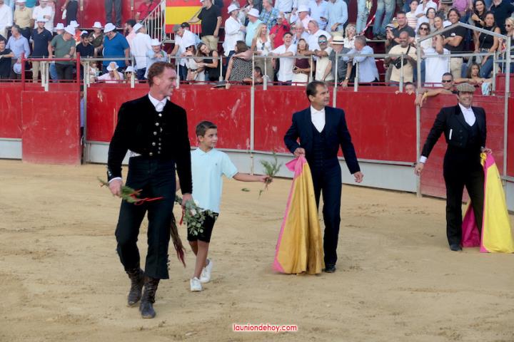 El también murciano Alfonso Romero fue el tercer protagonista. En su caso, se cumplían 25 años de cuando se hizo torero y dedicó a sus hijos lo que después sería una muy brillante actuación en la que fue de menos a más, escuchando varias veces los de “¡torero, torero!” y acabando con su ‘cornuda pareja’ al primer intento. Dos orejas y rabo con vuelta al ruedo jubilosa con lanzamiento de flores y de una bota de vino, además de ir acompañado por dos de sus hijos.