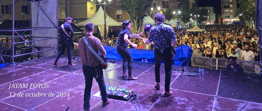 La banda de pop e indie cartagenera formada por Alejandro Rodríguez (voz, coros y guitarra acústica), Álvaro Corsino (guitarra eléctrica), José Valverde (guitarra eléctrica), Mike Royo (bajo) y Beto Romero (batería) protagonizó la última noche del escenario de la plaza de Joaquín Costa de las Fiestas del Rosario.