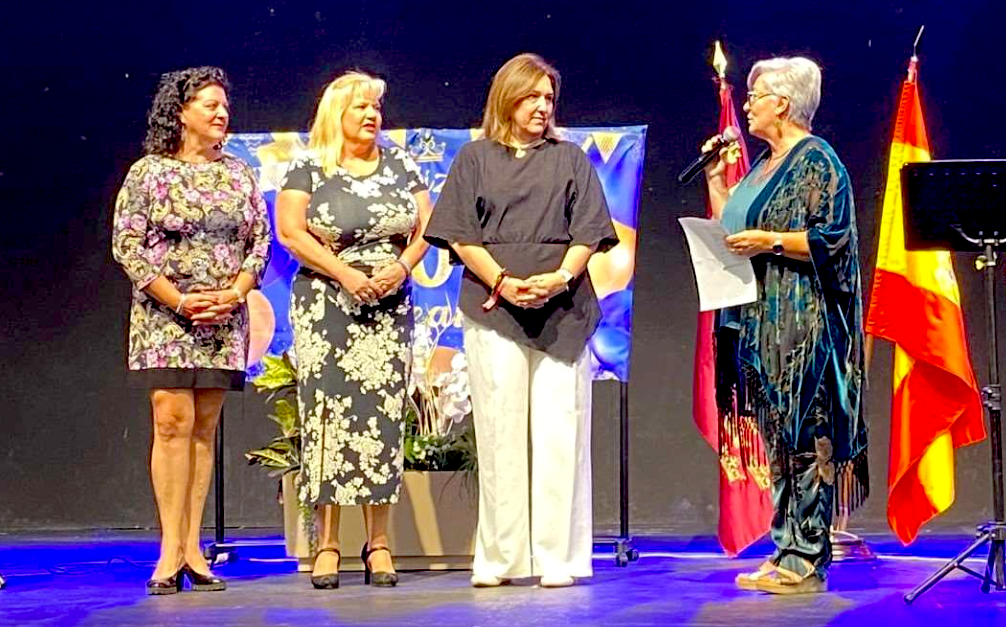 La directora del CSPM abrió la ceremonia con unas palabras de agradecimiento dirigidas a la Junta de Participación, al Comité del 50o Aniversario, y especialmente a los socios y socias, quienes han hecho posible la realización de todos los actos conmemorativos. Acto seguido, invitó al escenario a las tres concejalas que asistieron en representación del Excmo. Ayuntamiento de La Unión: Dami García, responsable del área de Personas Mayores; María Teresa López, responsable del área de Hacienda; y Laura Giménez, del área de Empresas e Industria.