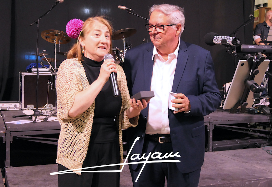 Premio para la Agrupación Santísima Virgen de la Caridad, recogido por su presidente (y cocinero), Alfonso Pagán López, y recogido por la primera teniente de alcalde del gobierno local, Teresa López.