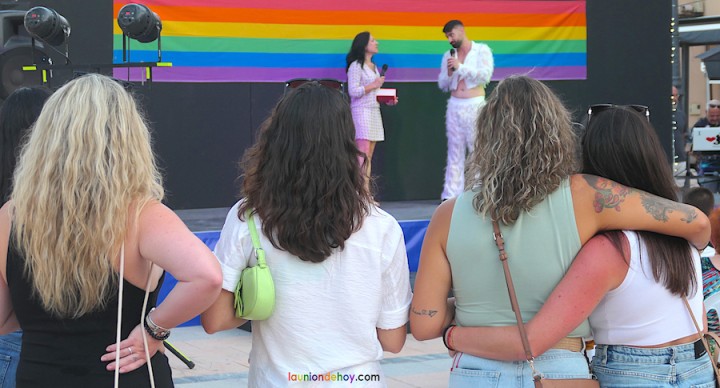 La plaza de Joaquín Costa, a medio camino entre la modernista fachada del Mercado Público y el monumento la minero, fue el lugar donde se instaló el escenario para celebrar el segundo capítulo (y final) de la celebración del 'Orgullo' en la ciudad, siendo este marco novedoso en esta segunda edición.