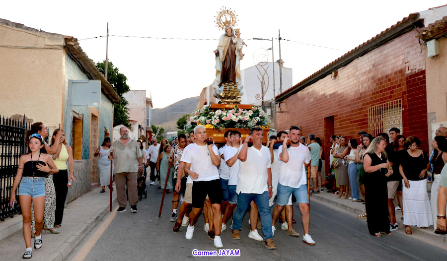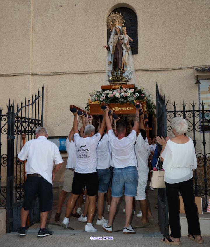 Con flores, cánticos y oraciones, Santa María del Carmen recorre las calles del pueblo entre aplausos y lágrimas de emoción. El momento más esperado llega cuando se acerca al puerto. Allí, junto al mar que tanto significa para Portmán, se vive uno de los instantes más sobrecogedores y simbólicos.