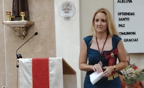 A las 13.15 horas es cuando, en su peregrinación hacia las proximidades del monasterio de San Ginés de la Jara, de tienen previsto llegar a la ermita de Roche, donde efectuarán una ofrenda floral a la Virgen de los Dolores y celebrarán bajo la pinada una comida de hermandad con arroz gratuito para todos los asistentes. En la foto, Carolina Celdrán de Haro, elegida como madrina de esta edición.