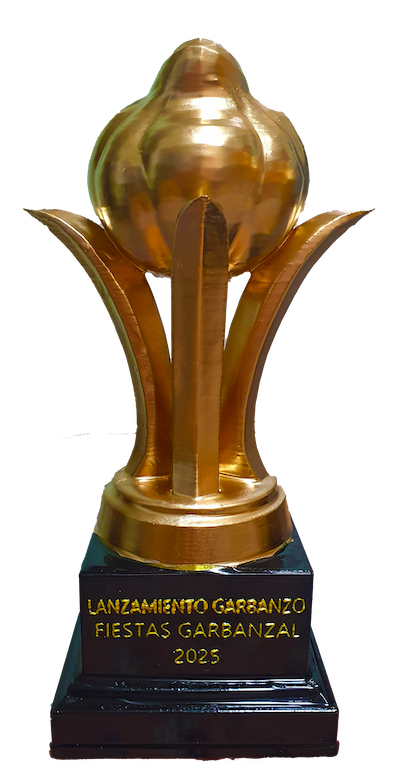El trofeo 'Garbanzo de oro' no es un trofeo más, pues lleva más cosas. Debajo tiene unos códigos que al ser escaneados por el terminal móvil sale un mensaje de voz personalizado y una serie de 'direcciones de redes sociales (RR SS)', como el perfil de las asociaciones de vecinos y de amas de casa de El Garbanzal, la web en exclusividad de La Unión (Portman-Roche), etc. También lleva más, como un certificado que garantiza que está realizado con material  biodegradable (para cuidad el medio ambiente).