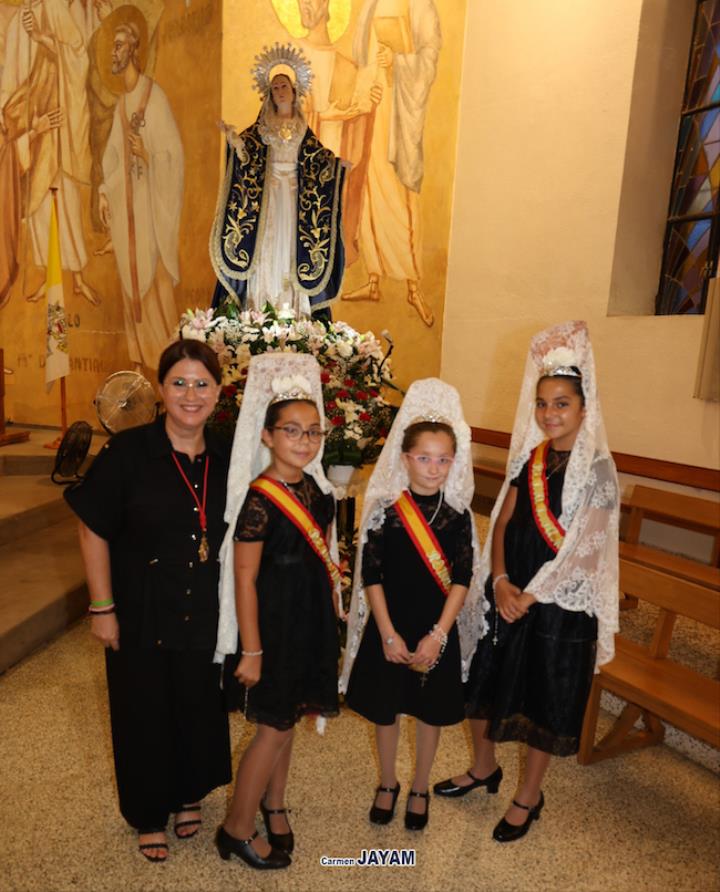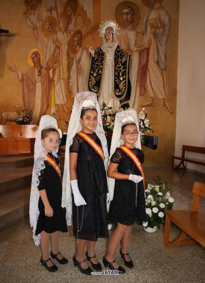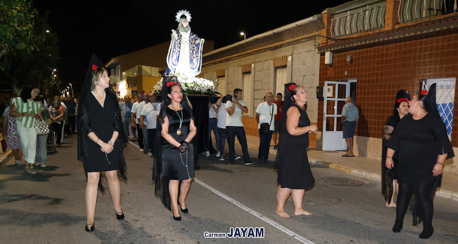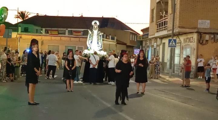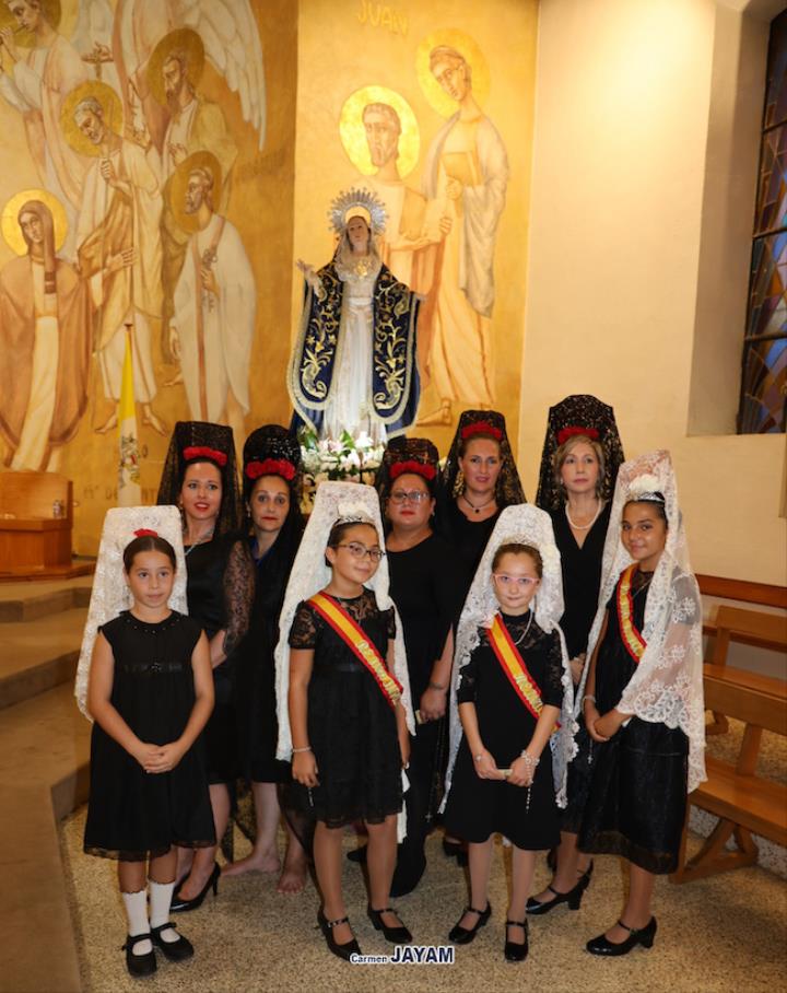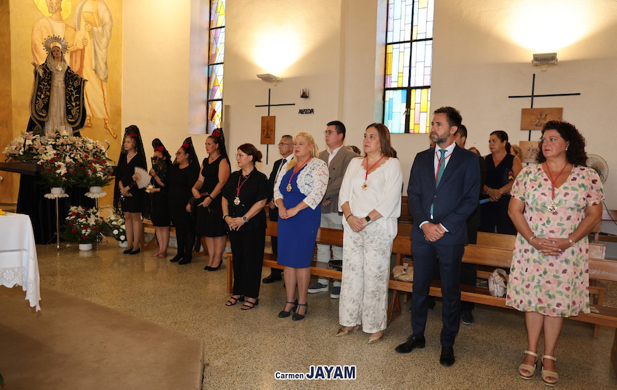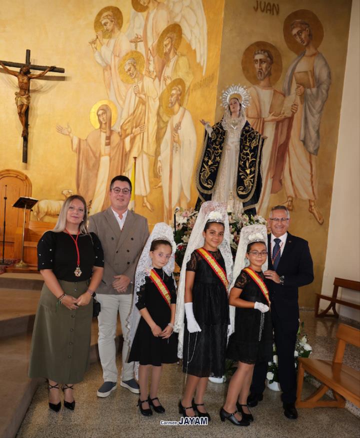 El gran día con la Dolorosa de El Garbanzal contó con la participación de vecinos, autoridades locales y representantes de los colectivos cofrades de La Unión y de Portmán, además del triplete de reinas de las fiestas, entre otros. Destacar también la participación de 'Mujeres con alma' en la misa, el acompañamiento de la banda de cornetas y tambores de la Agrupación de la Dolorosa y de una representación de la Agrupación Musical La Unión a la procesión y que fueron cinco las mujeres adultas que lucieron vestuario de 'manola' con teja, un hábito que se pretende ir recuperando cada año en esta jornada de la festividad de la patrona, que es cuando la Virgen sale cada año a 'pasear' por su pueblo con sus fieles.