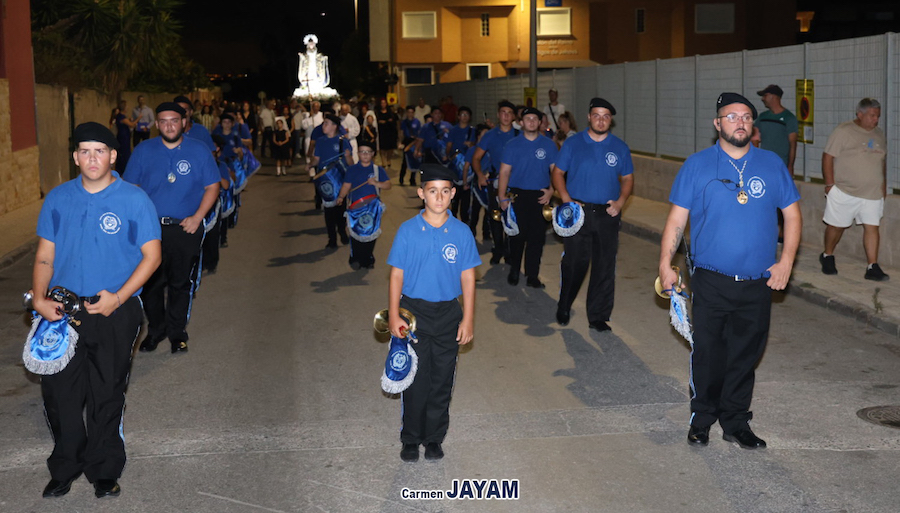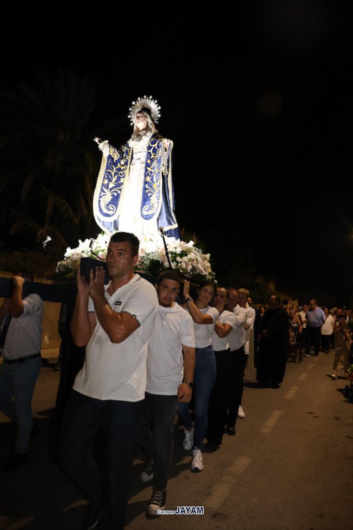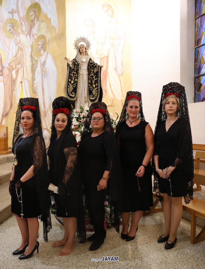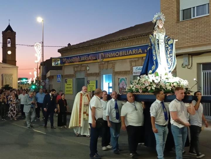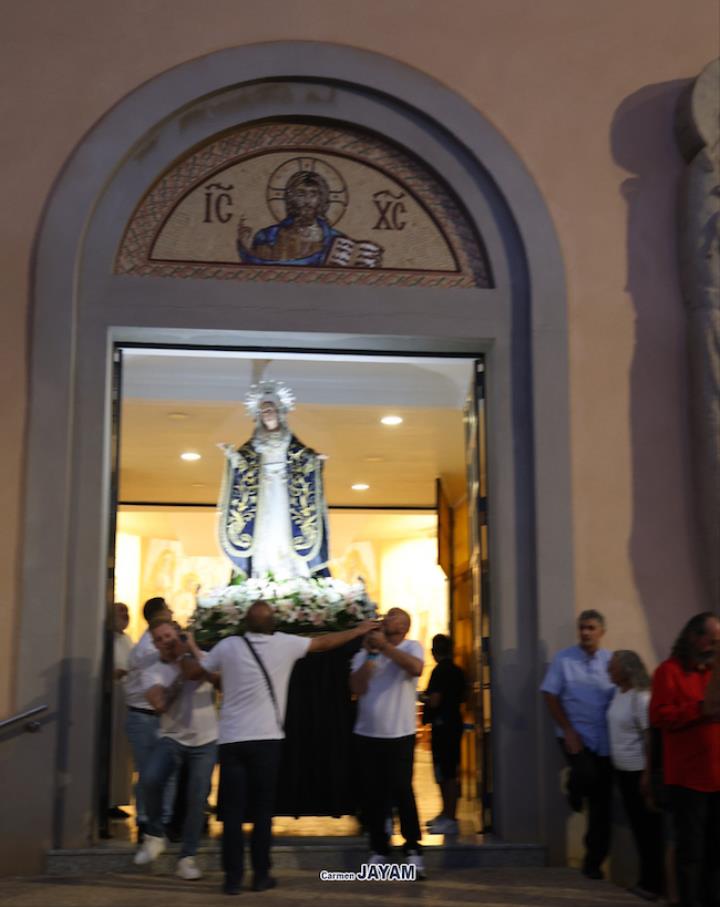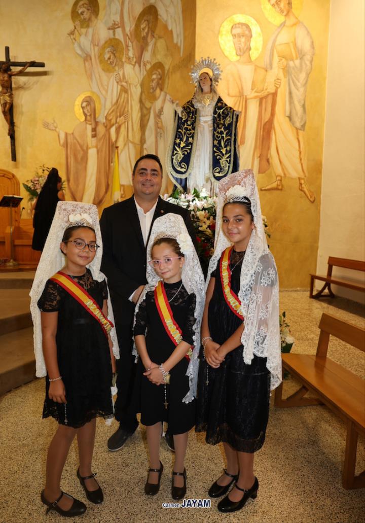 El gran día con la Dolorosa de El Garbanzal contó con la participación de vecinos, autoridades locales y representantes de los colectivos cofrades de La Unión y de Portmán, además del triplete de reinas de las fiestas, entre otros. Destacar también la participación de 'Mujeres con alma' en la misa, el acompañamiento de la banda de cornetas y tambores de la Agrupación de la Dolorosa y de una representación de la Agrupación Musical La Unión a la procesión y que fueron cinco las mujeres adultas que lucieron vestuario de 'manola' con teja, un hábito que se pretende ir recuperando cada año en esta jornada de la festividad de la patrona, que es cuando la Virgen sale cada año a 'pasear' por su pueblo con sus fieles.