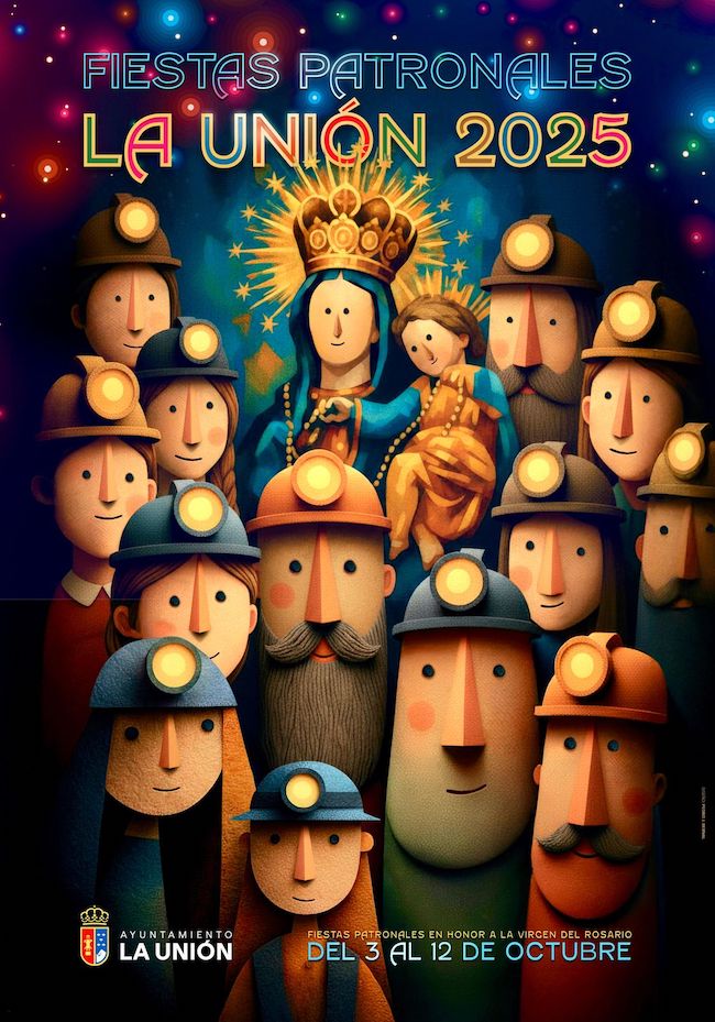 El artista unionense Pedro Javier Bernal, conocido como Txiqui ha sido el encargado de realizar el cartel oficial de las Fiestas Patronales de La Unión 2025, dedicadas a la Virgen del Rosario.La obra ha sido recibida con gran entusiasmo y admiración, tanto por parte del Ayuntamiento como de los vecinos, al considerarse una representación fiel y emocionante de la esencia de nuestro municipio, nuestras tradiciones y nuestra gente. Un cartel que no solo anuncia unas fiestas, sino que también transmite el orgullo de ser unionense.